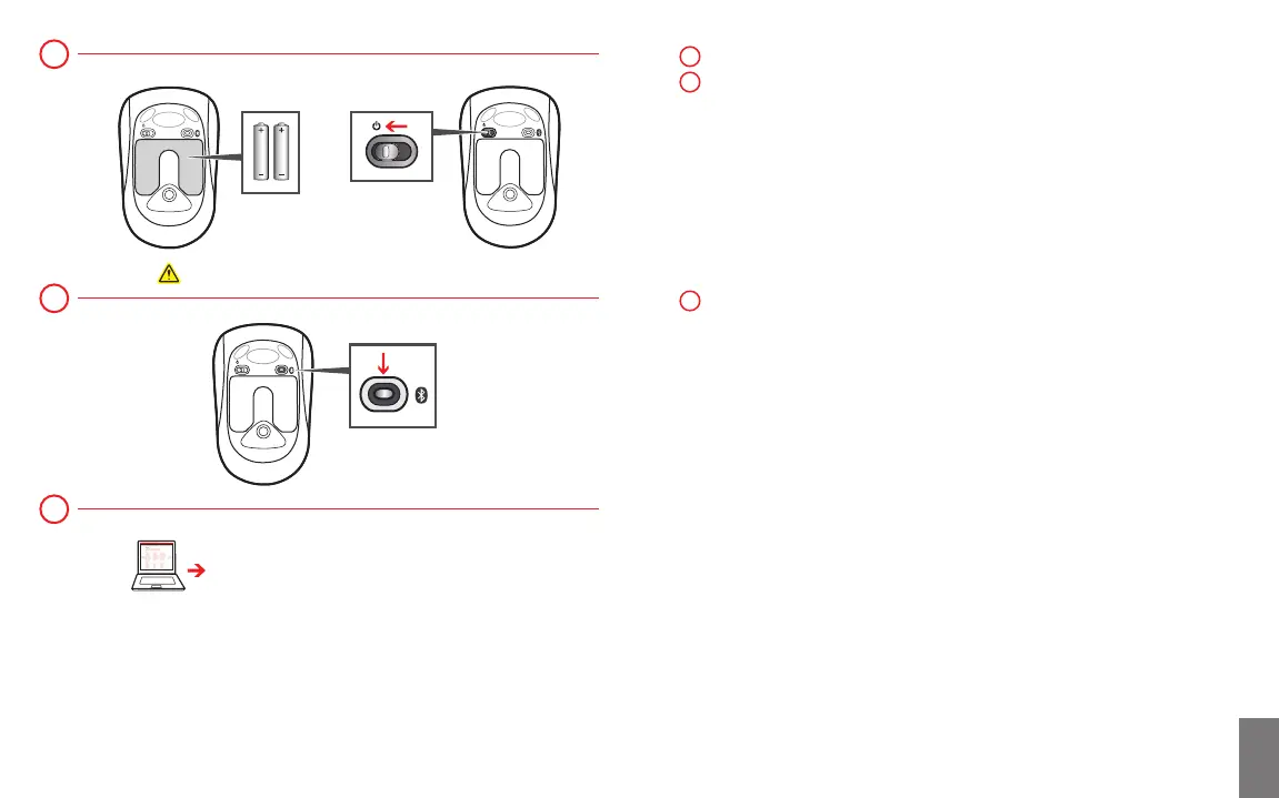 Insert the two AAA alkaline batteries and turn on the mouse.
