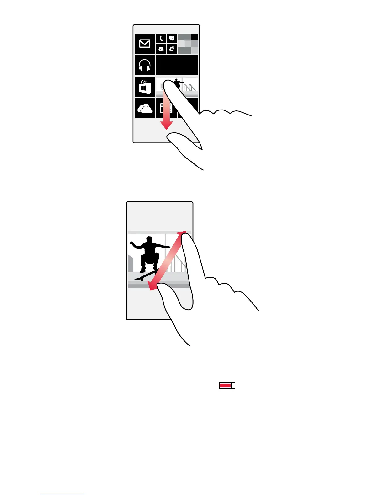 Place 2 fingers on an item, such as a map, photo, or web page, and slide your fingers apart or together.