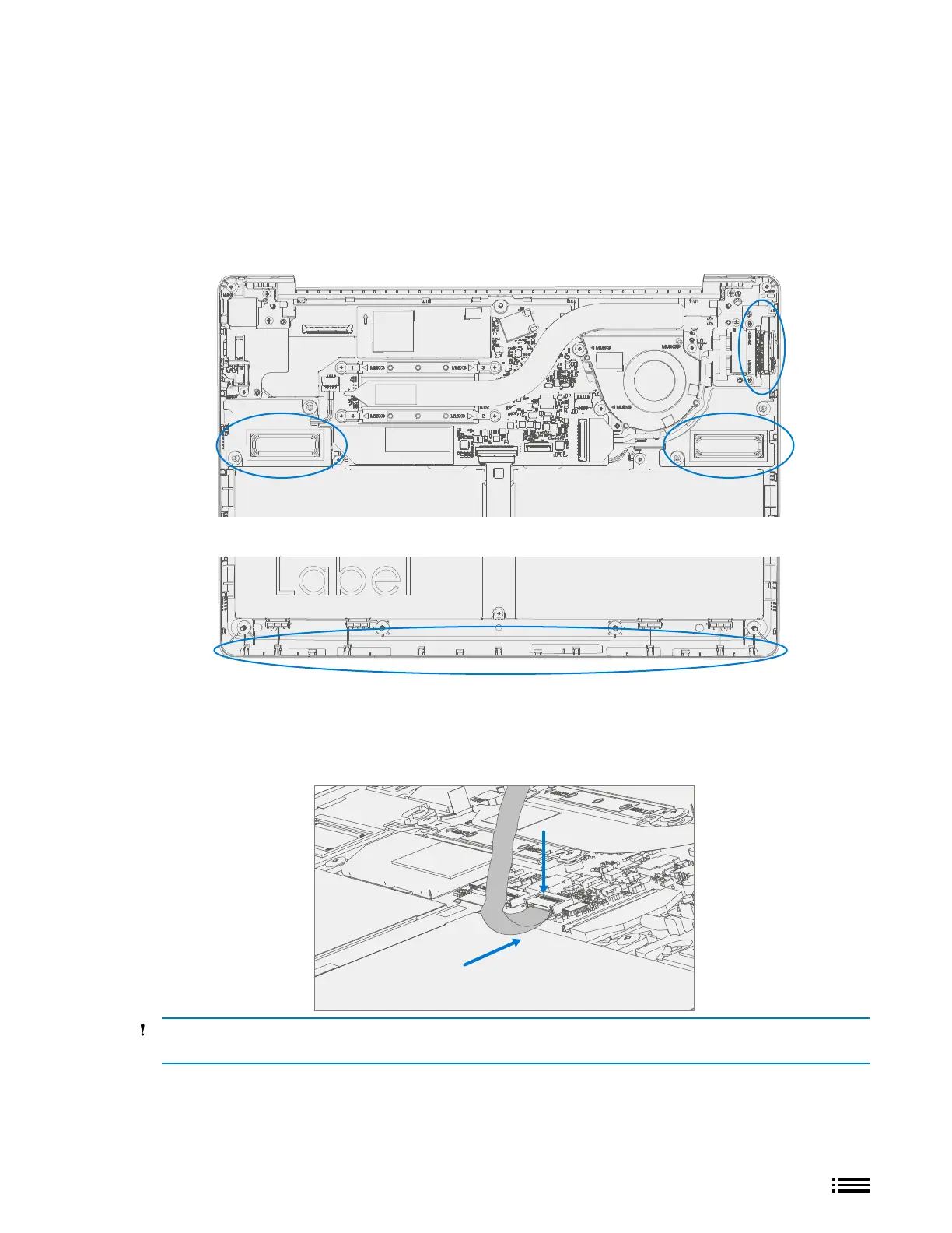 C-cover FPC to the main board. Slide the FPC into the connector and then press down on the locking tab.