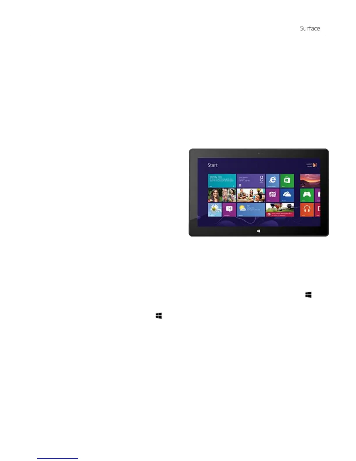 Keyboard Press the Windows logo key on Touch Cover or Type Cover.