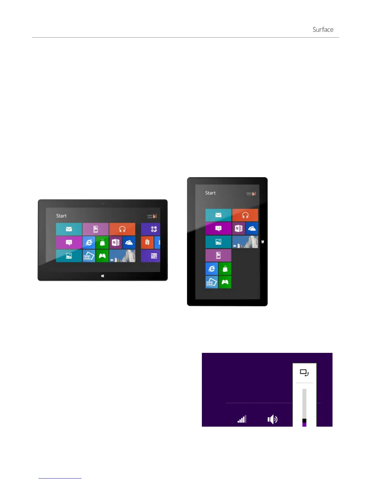 When you rotate Surface, the screen content automatically rotates to the new orientation. For example, you might