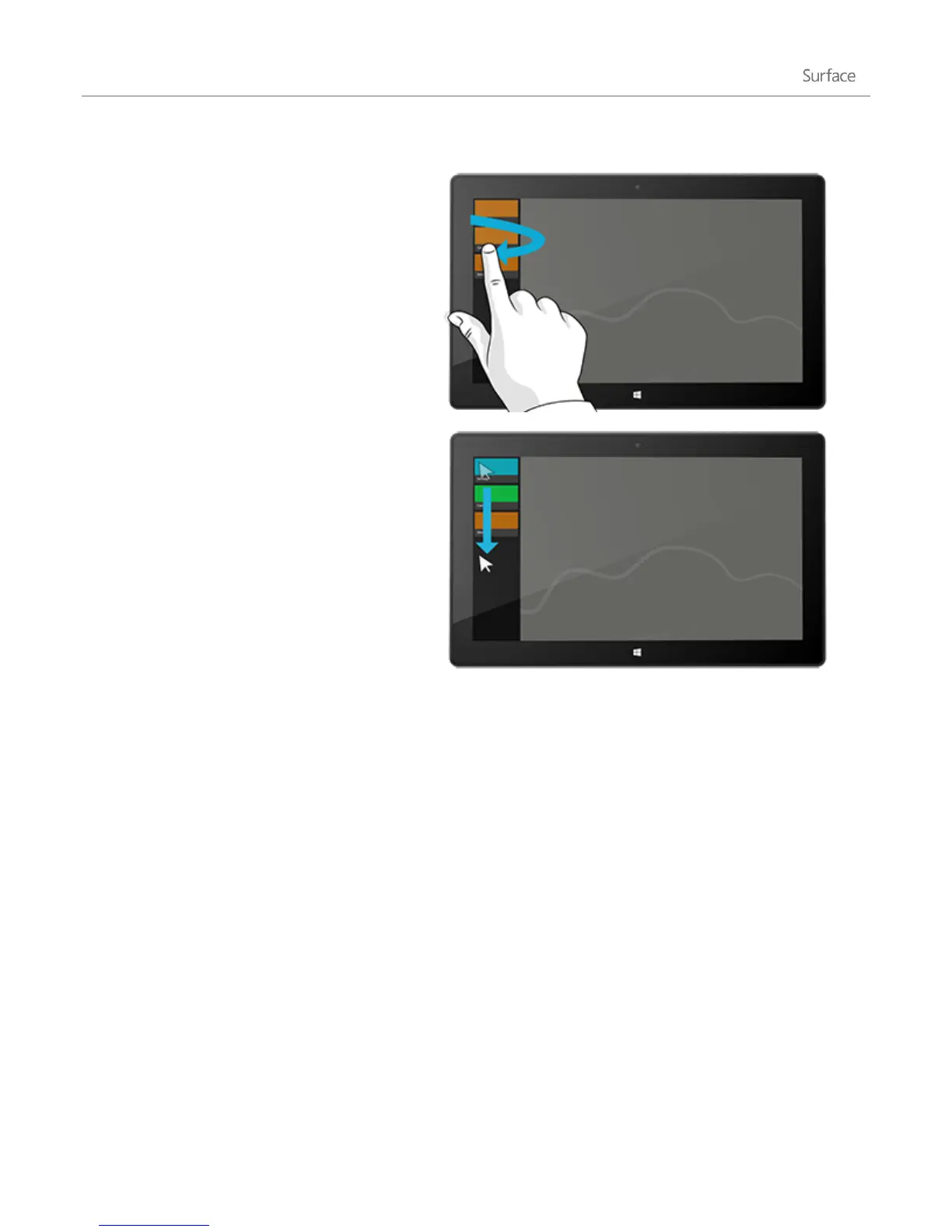 With touch, swipe in from the left edge