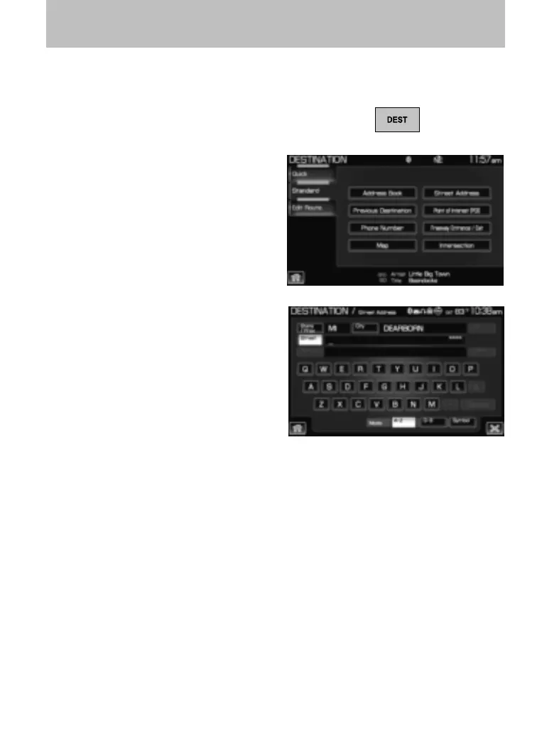 TO SET A DESTINATION USING THE NAVIGATION SYSTEM:
