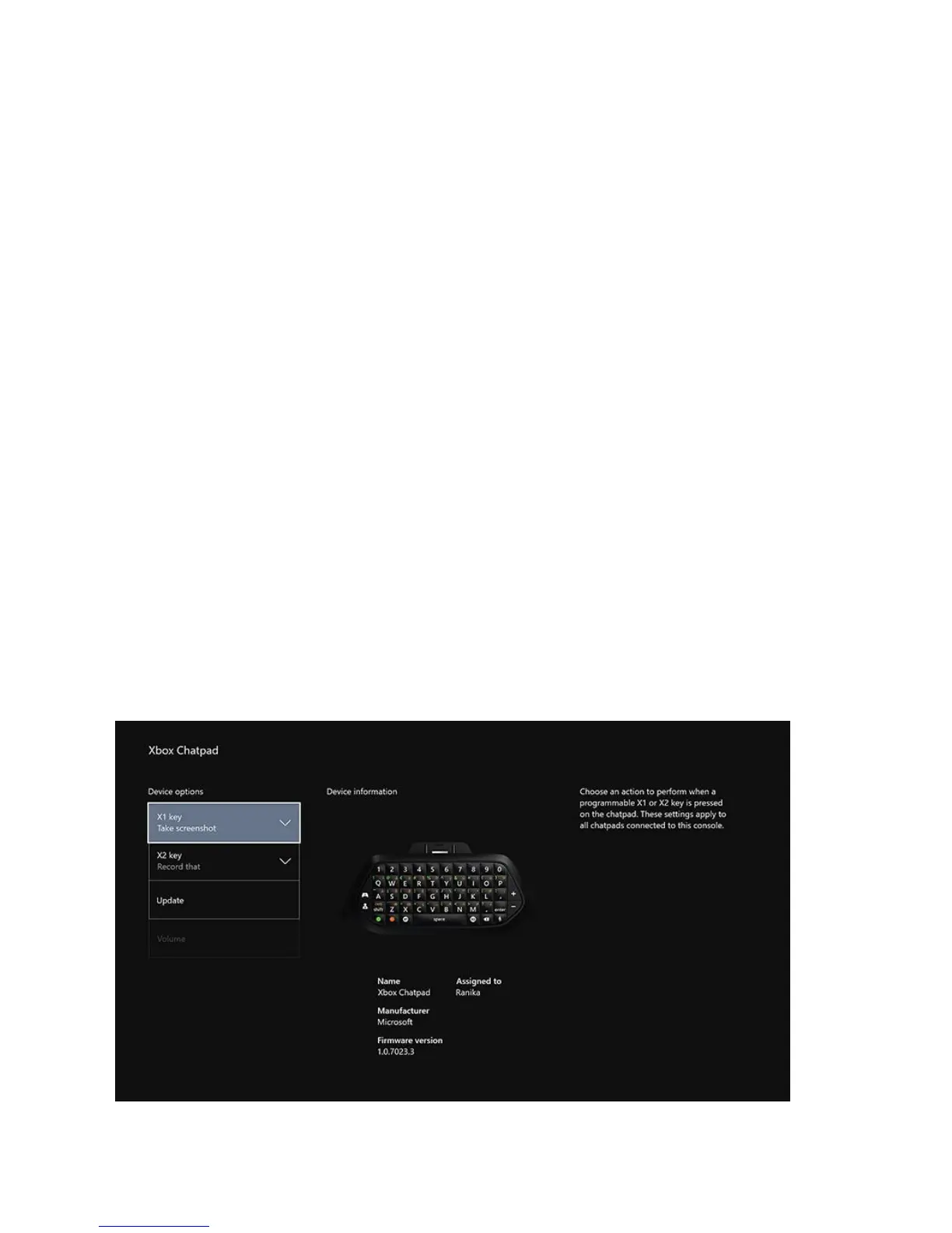 g. Select the controller the chatpad is connected to.