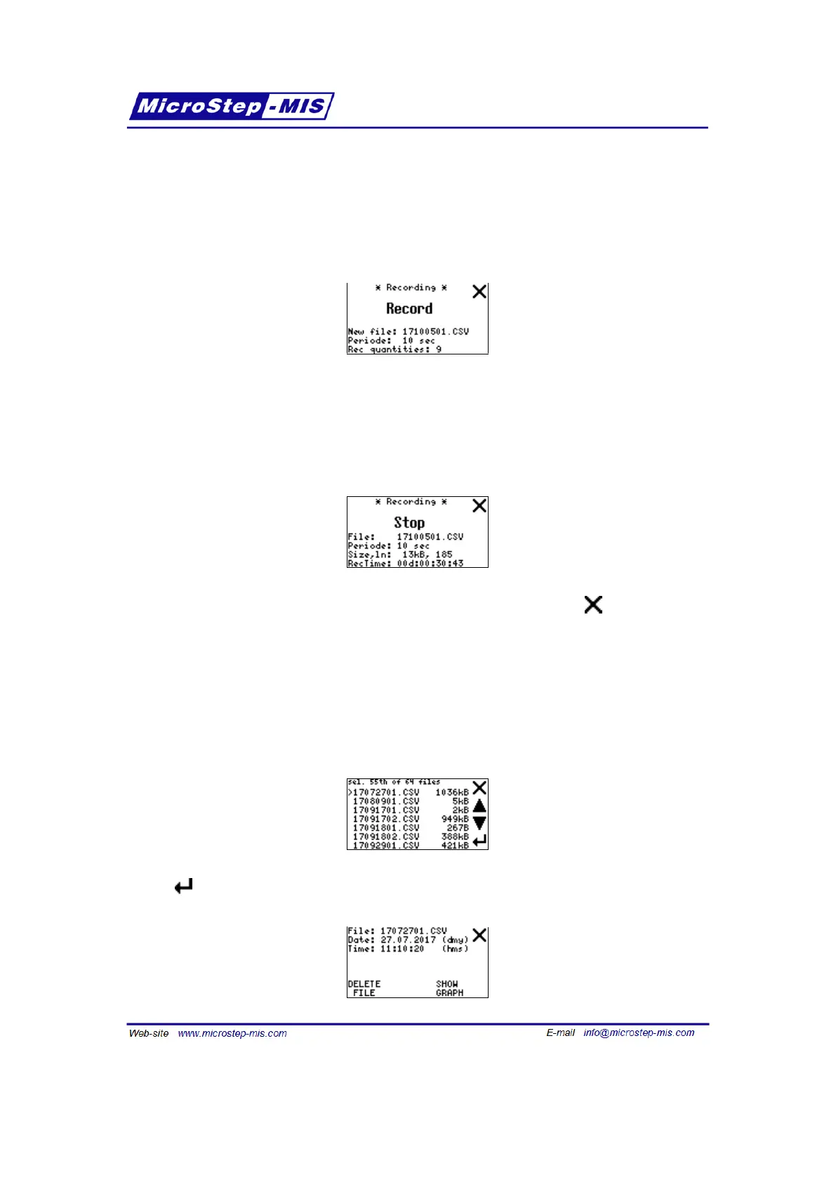 This screen is used for viewing logged data and deleting files individually. After entering the List