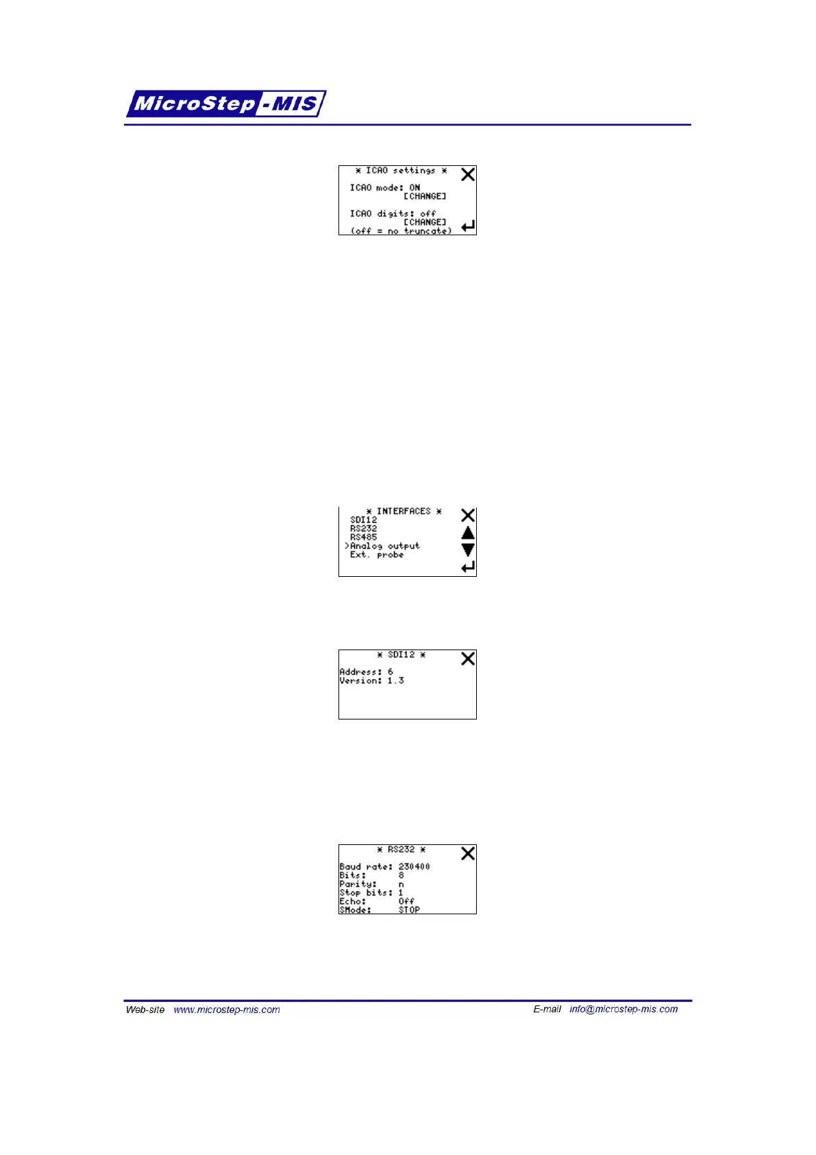 Interfaces menu allows user to display Interfaces settings, such as SDI-12 address of the barom-