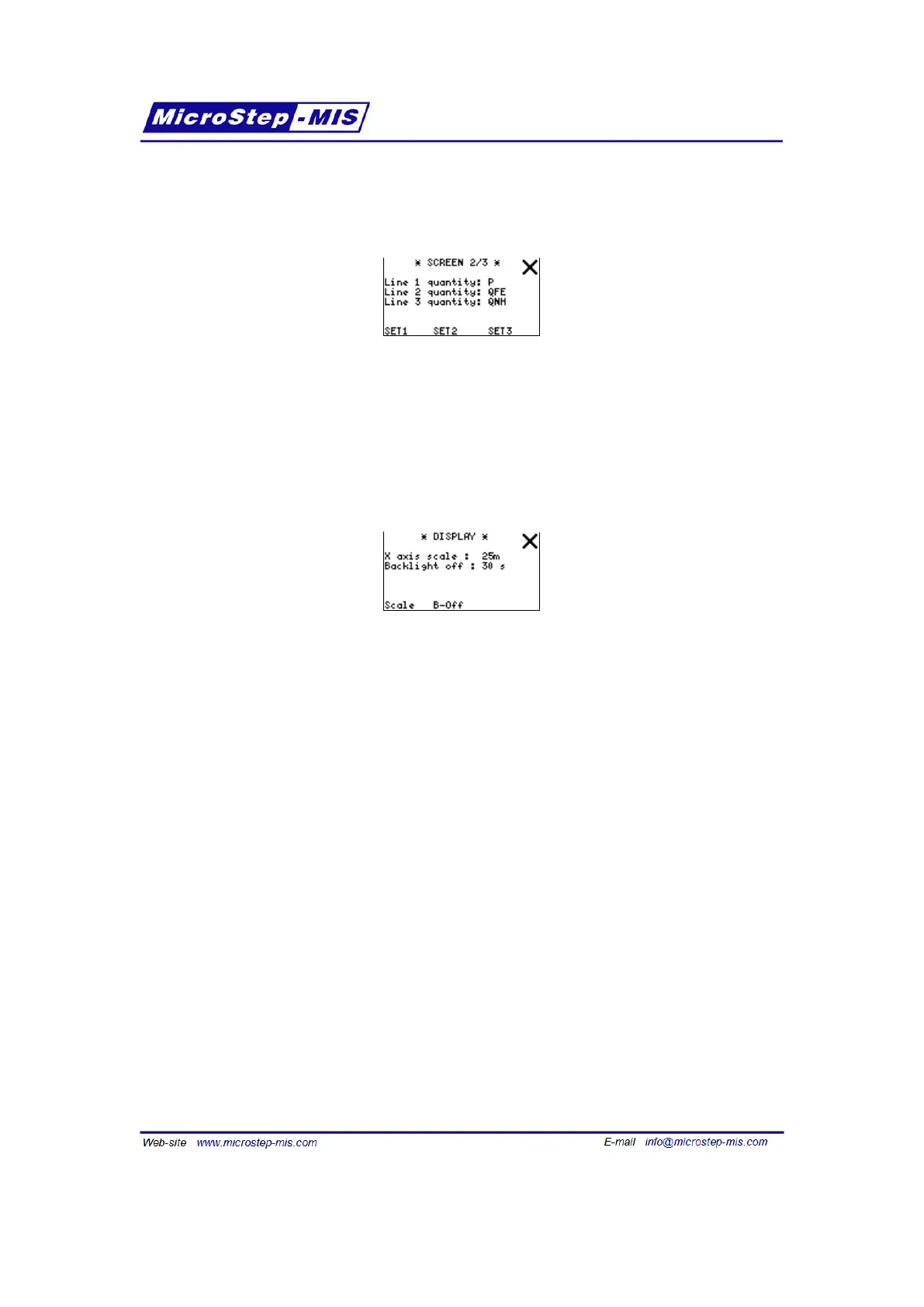 In "Home screen" submenus you can set which quantities are shown on "basic screens" after