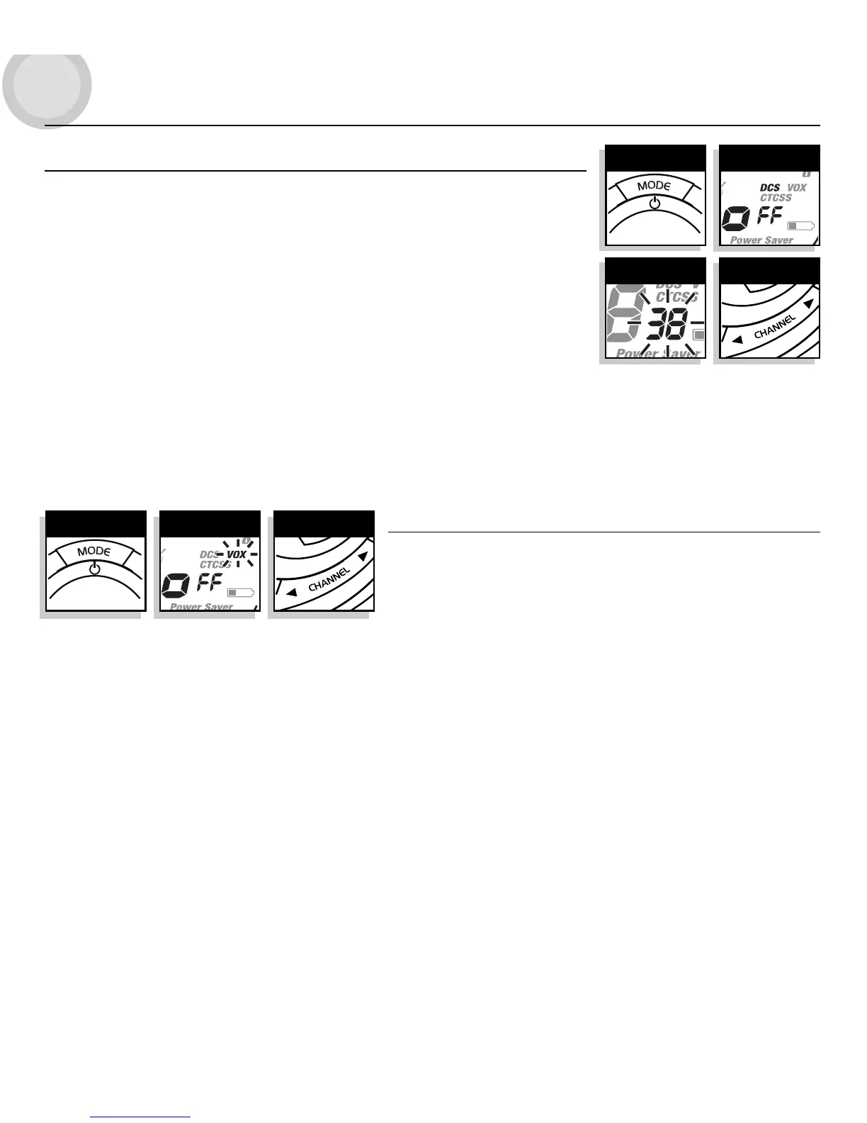 1. After selecting a channel, press and release the MODE button until the DCS icon flashes on the