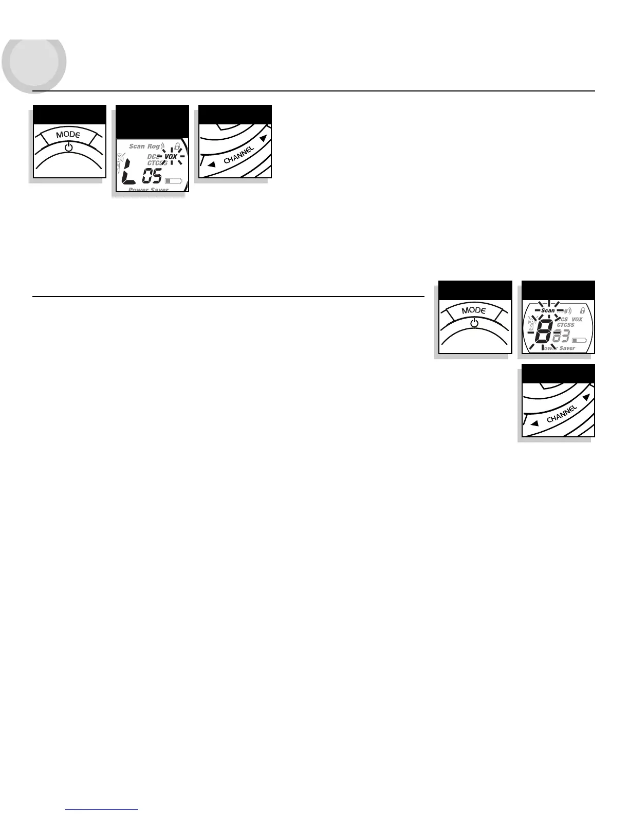 1. Press the MODE button until the Scan icon and the channel number flash on the display.