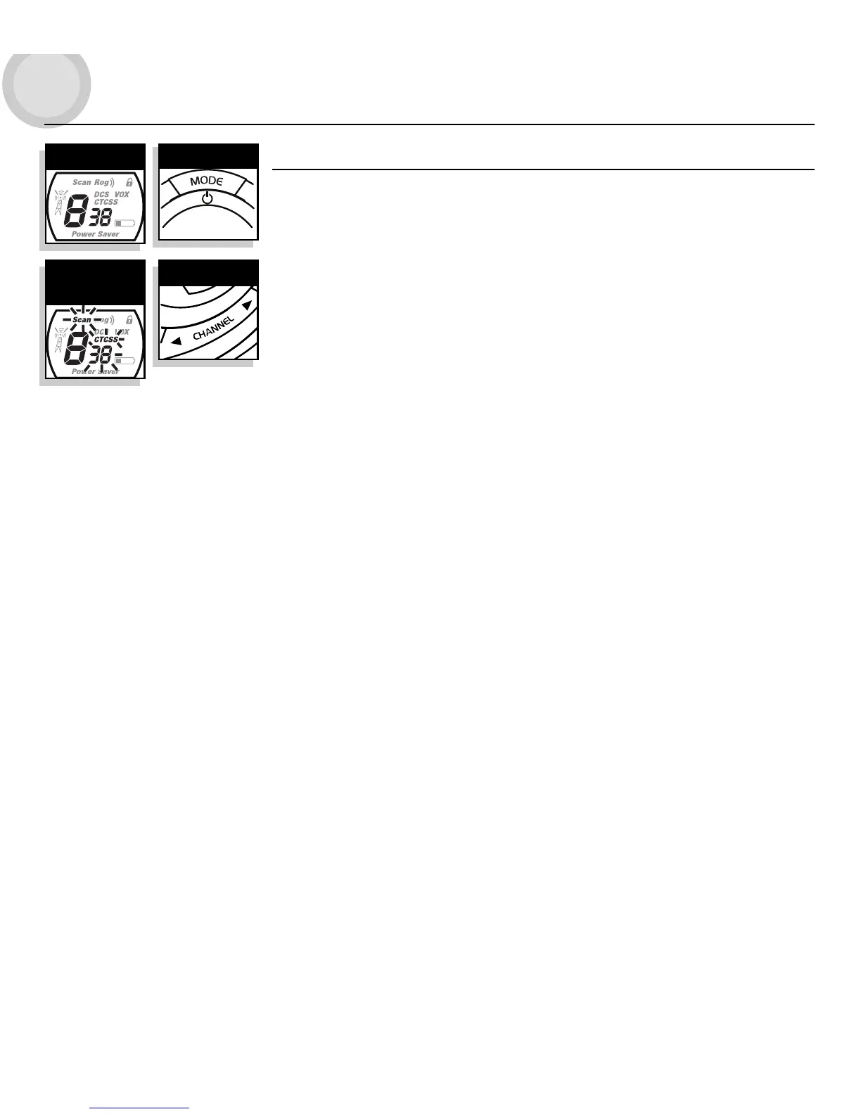 2. Press the MODE button until the Scan icon, CTCSS icon and the small numbers flash on the display.