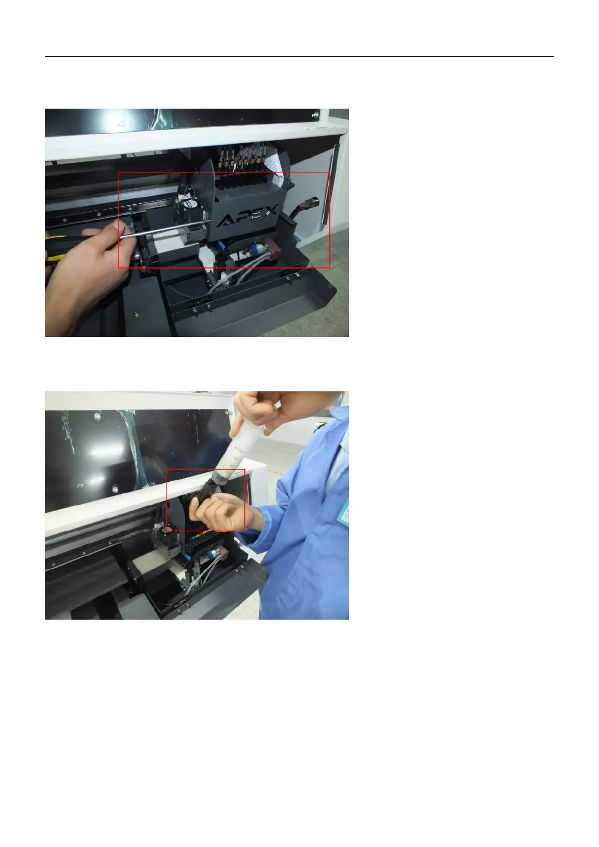 2.6 As shown in Figure, after opening the lid, in turn using the syringe to pump ink to the correct color ink dampers .