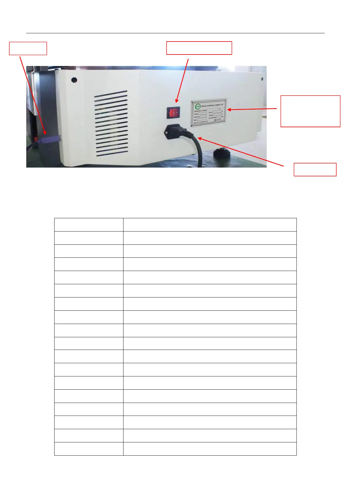 1.1.1 Machine Installation and Relevant Parameter
