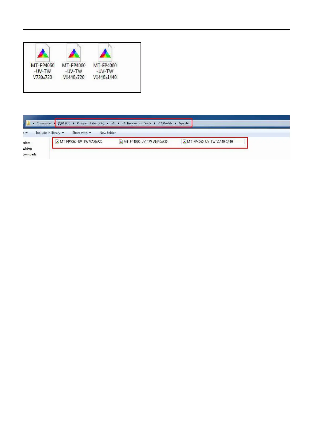 2.10.3 Finally copy the necessary ICCProfiles into the folder Apexjet”.