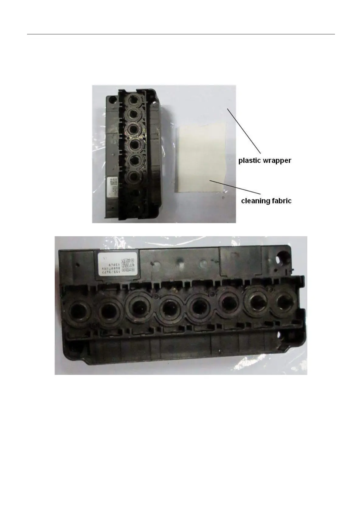 1.After disassembly and cleaning the print head, put it on some plastic wrapper, and cover the print head inlets and