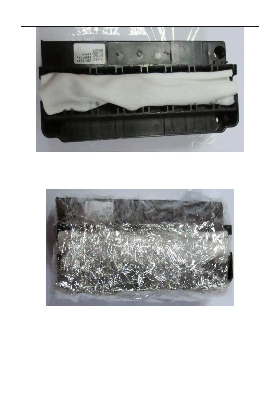 2). After the print head inlets and nozzles are covered with clean fabric, wrap the print head in plastic wrapper. Then