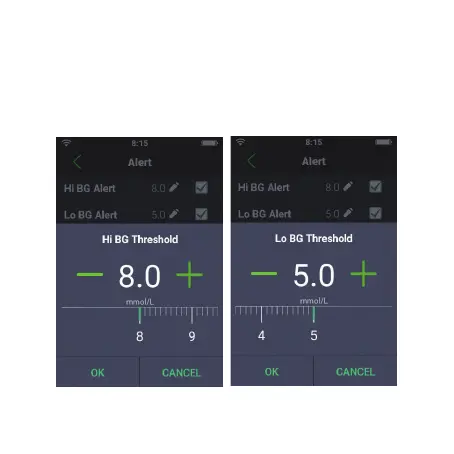 • Press “Lo BG Threshold” to enter the desired low