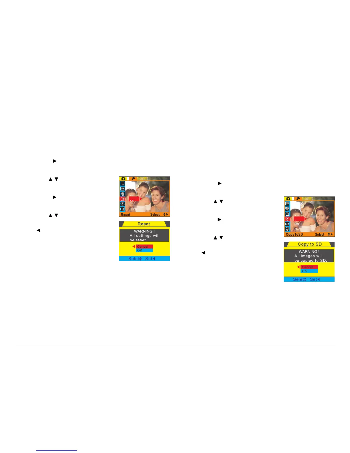 factory default settings. To access the Reset option: