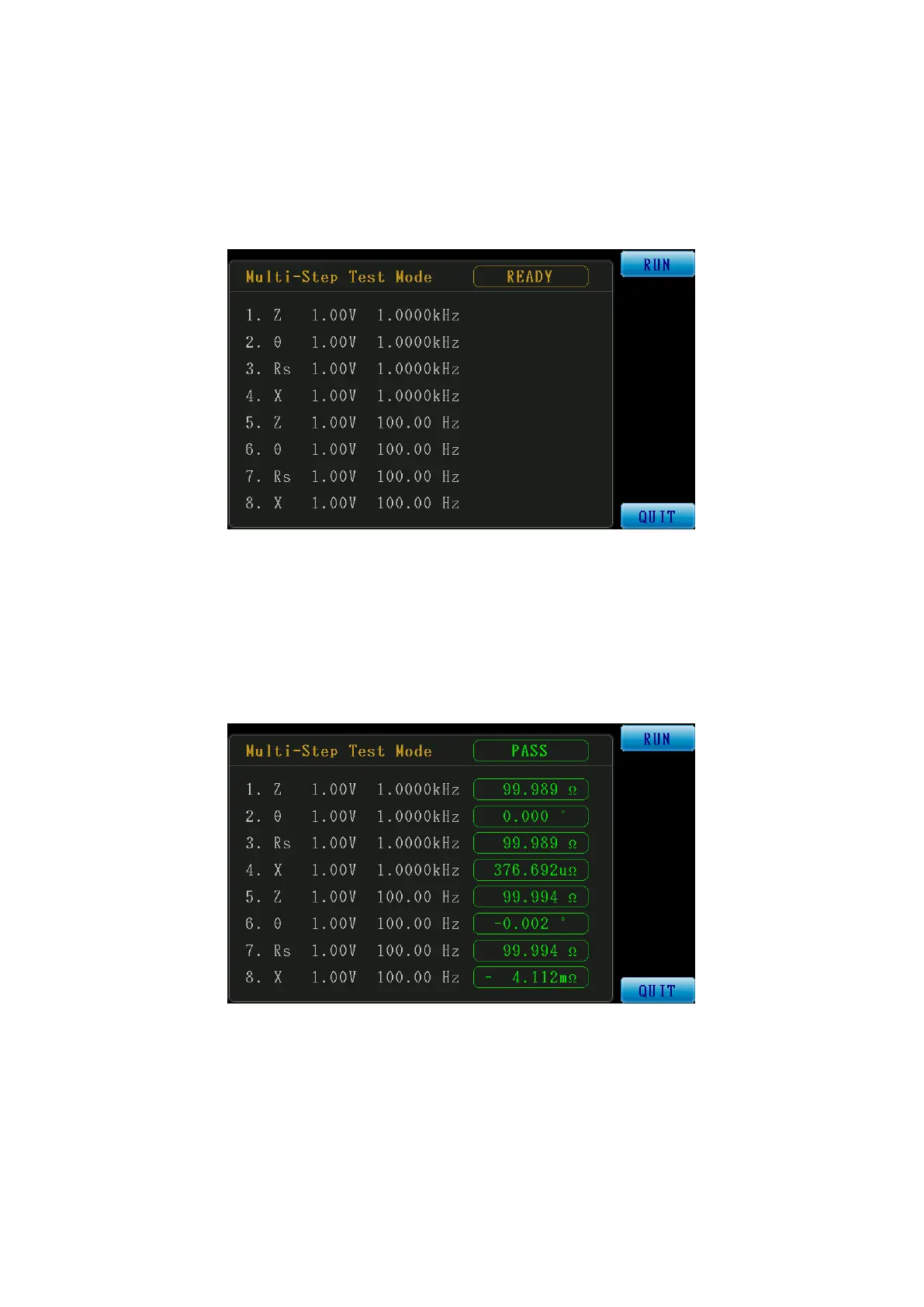 QUIT: Return to the Multi-Step Mode test item list screen.