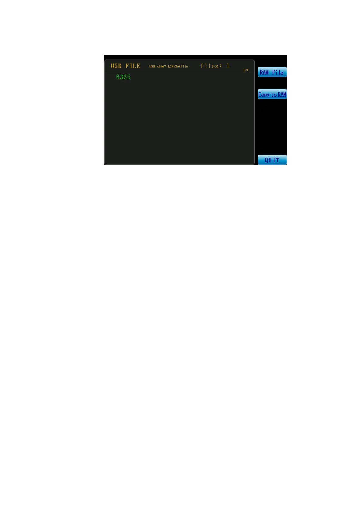 USB File: Switch to the USB flash drive file list screen as shown in the following screen.
