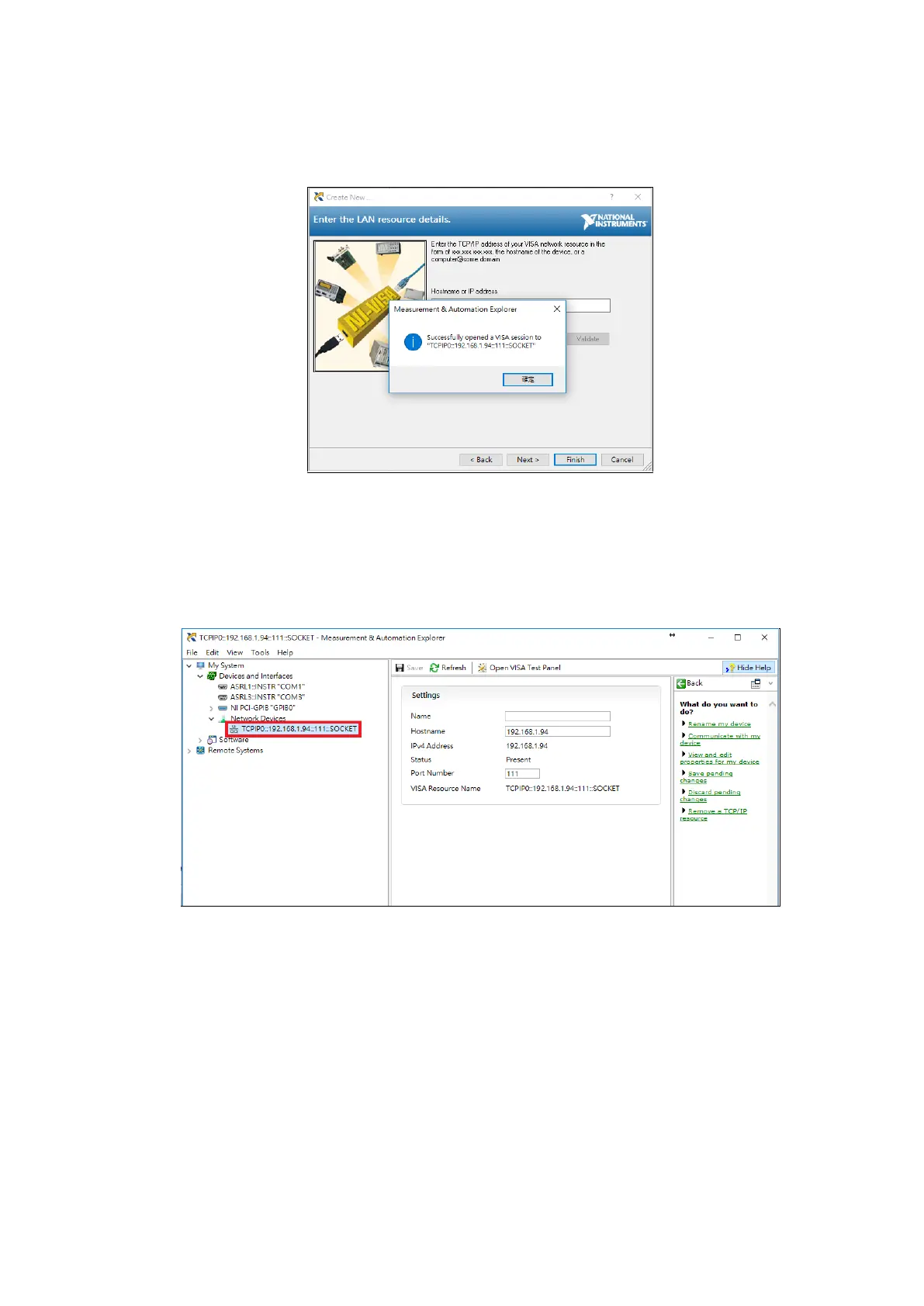 At this time, the device that was just added (TCPIP0::192.168.1.94::111::SOCKET) will be