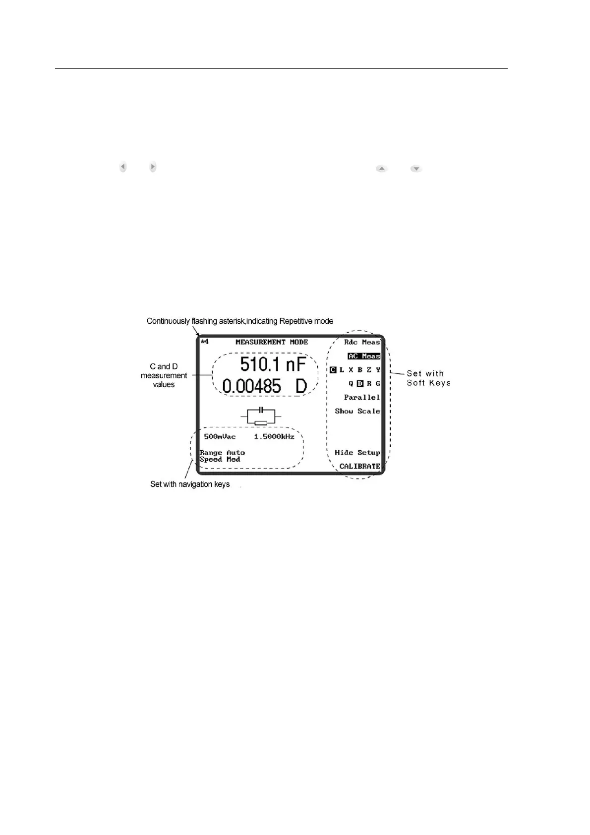 The following MEASUREMENT MODE parameters are selectable with the ten soft keys to