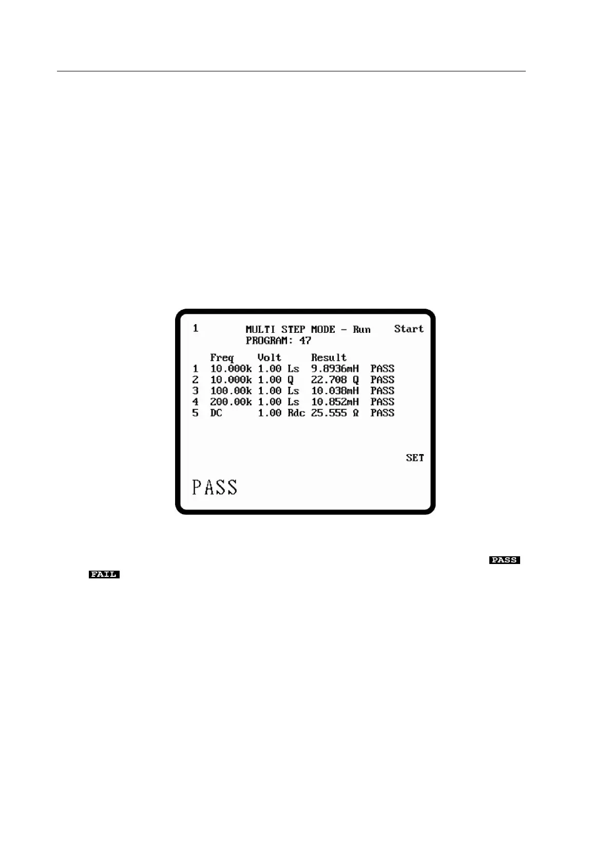 , results. The Pass/Fail output goes low only when a measurement has passed all set