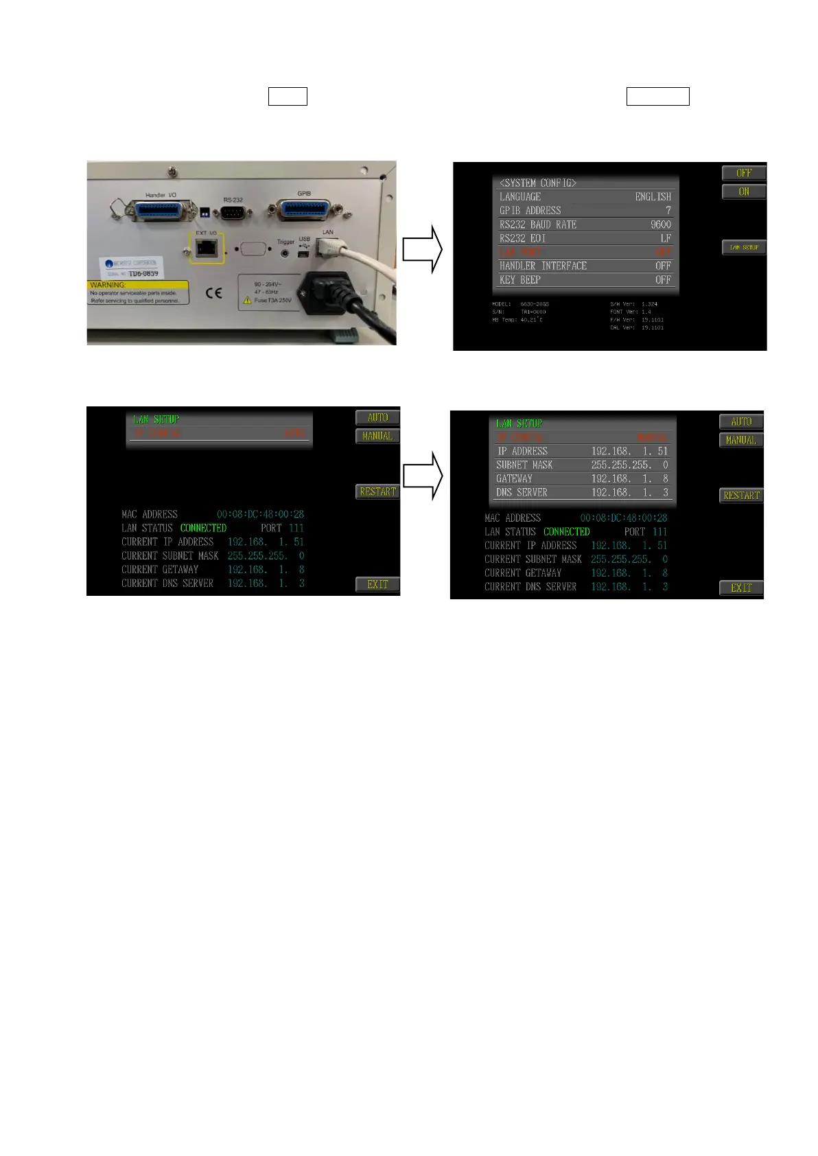 CURRENT IP ADDRESS: The IP address of the instrument.