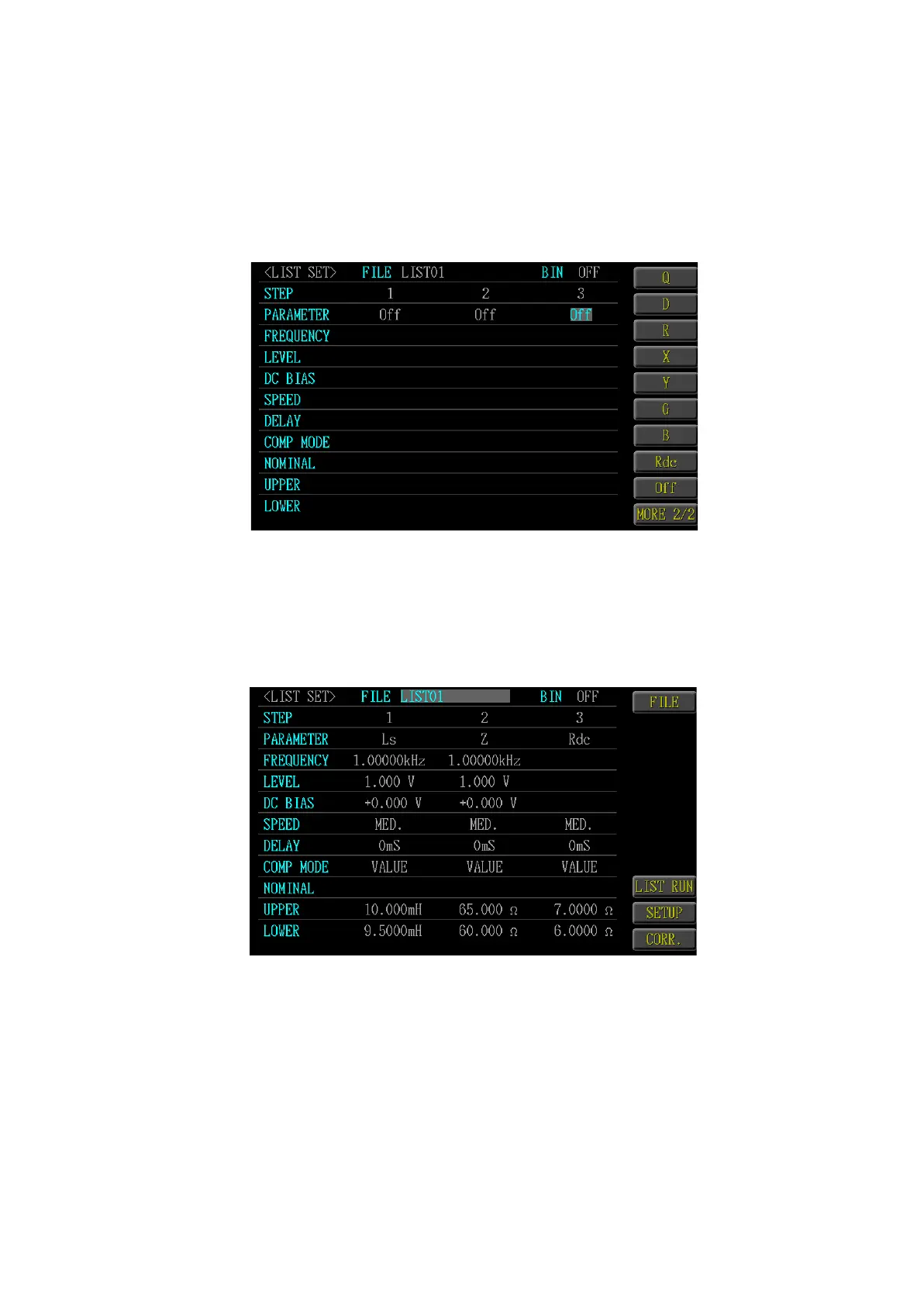 LOWER. After being set, select <List Run> key to access multi-step testing page.