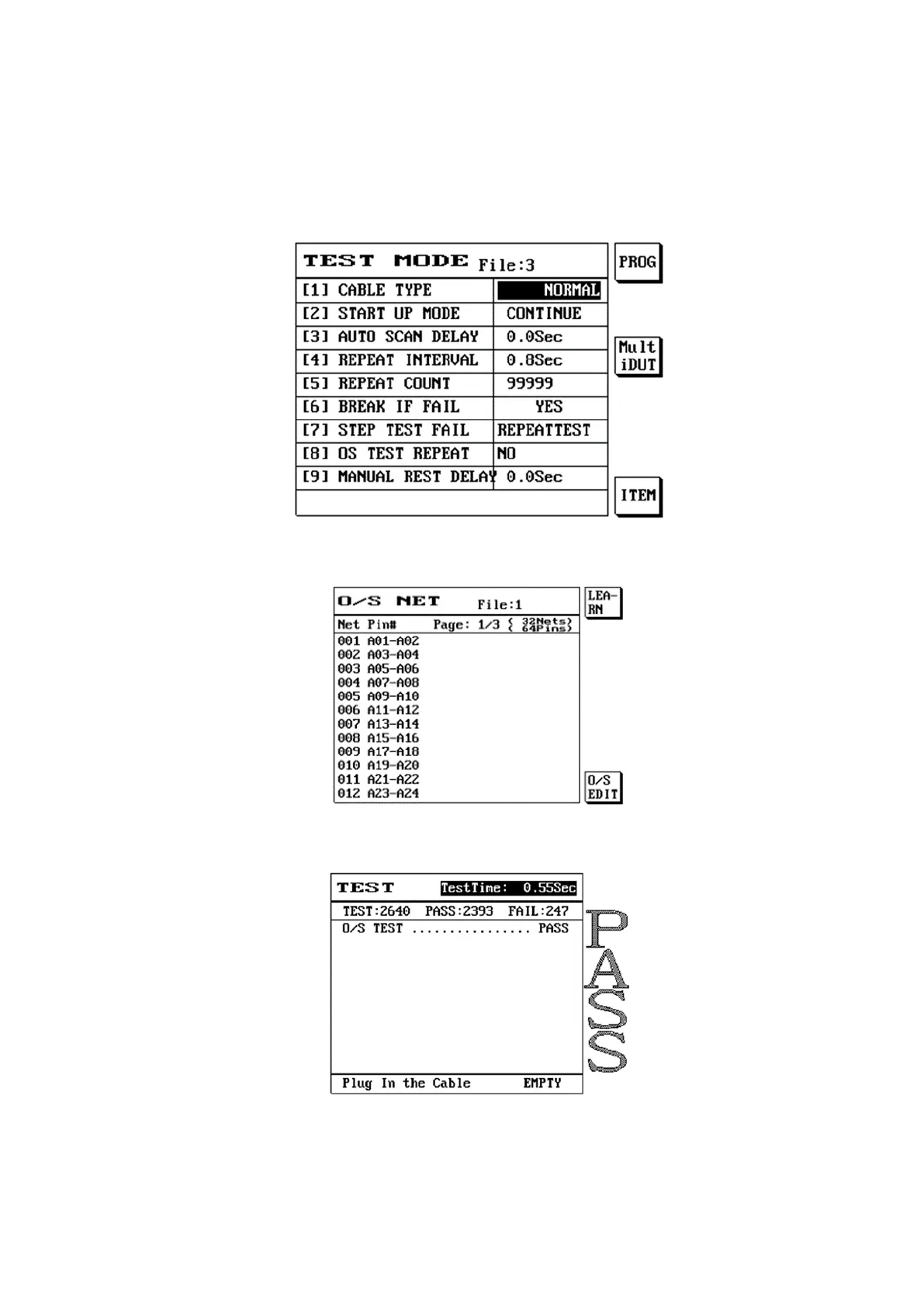 When performing the cable test, press [TEST] and the LCD screen will display as follows: