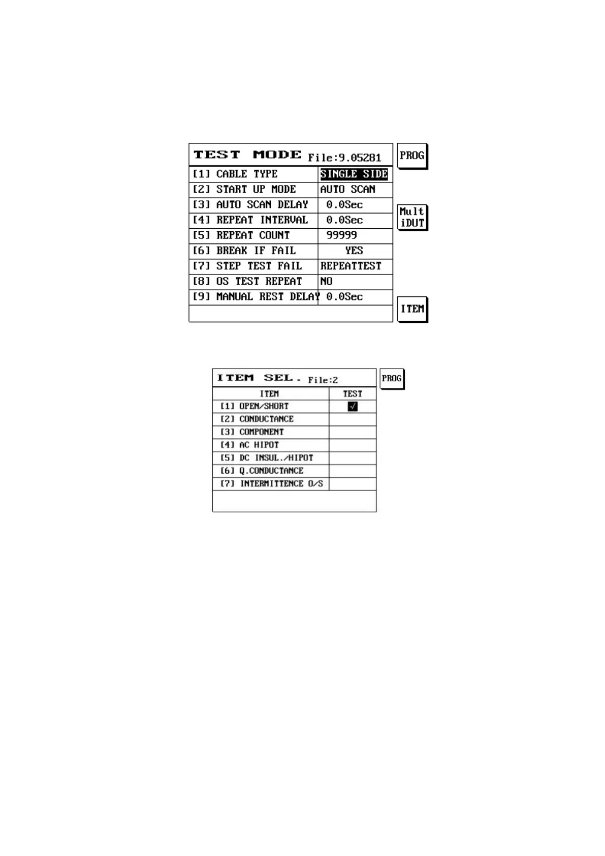 (2) Press S1 [Item selection] to switch whether to execute test for the selected item.