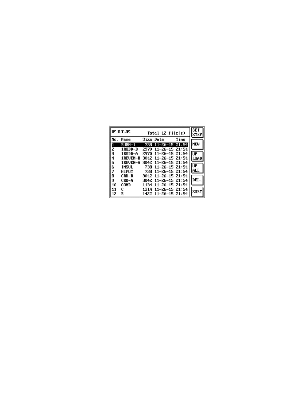 Select file loads files saved on the permanent memory to the main memory so that they can be used for