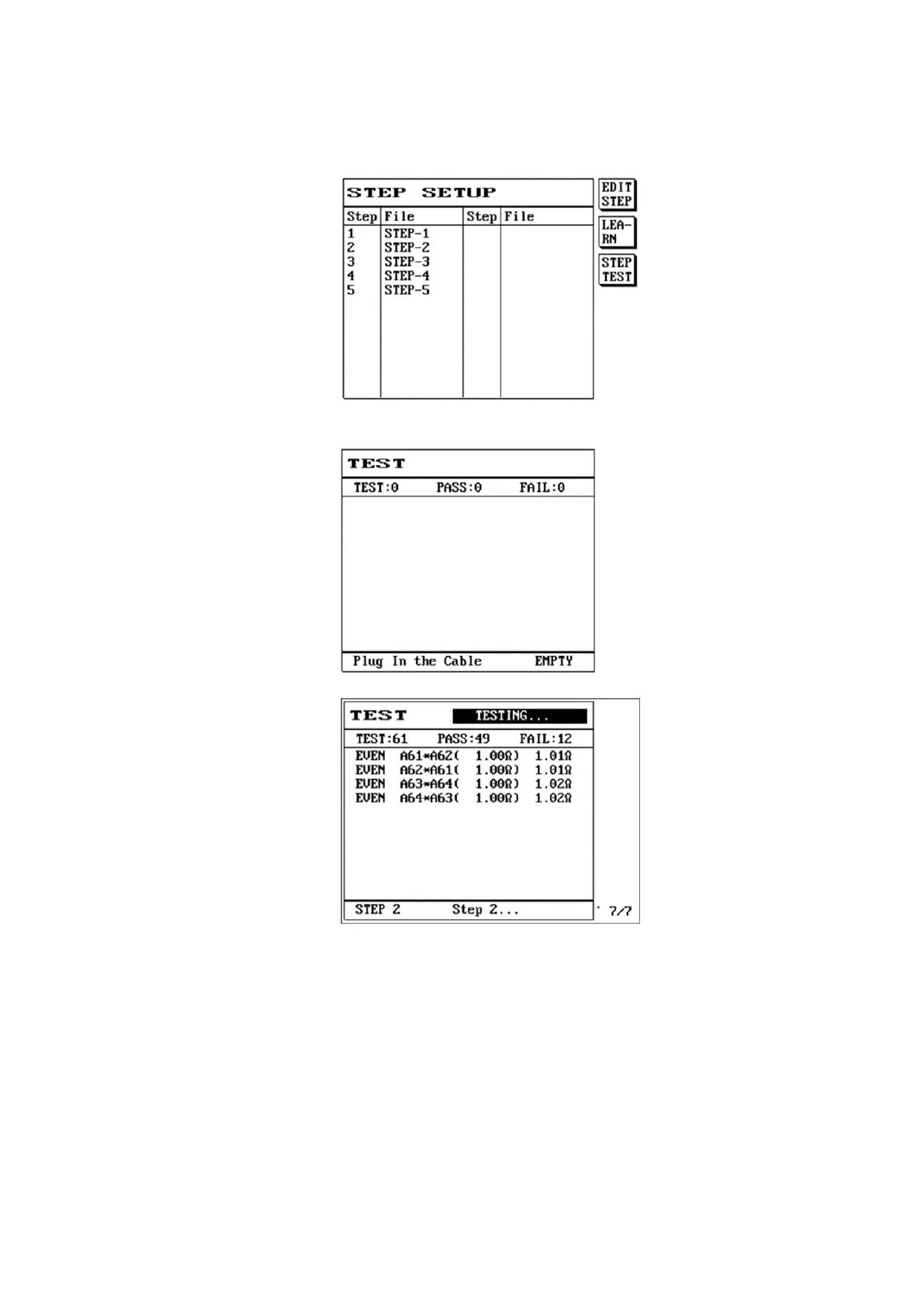 (17) Press S3 [Step Test] or [TEST] and the LCD screen will display as follows: