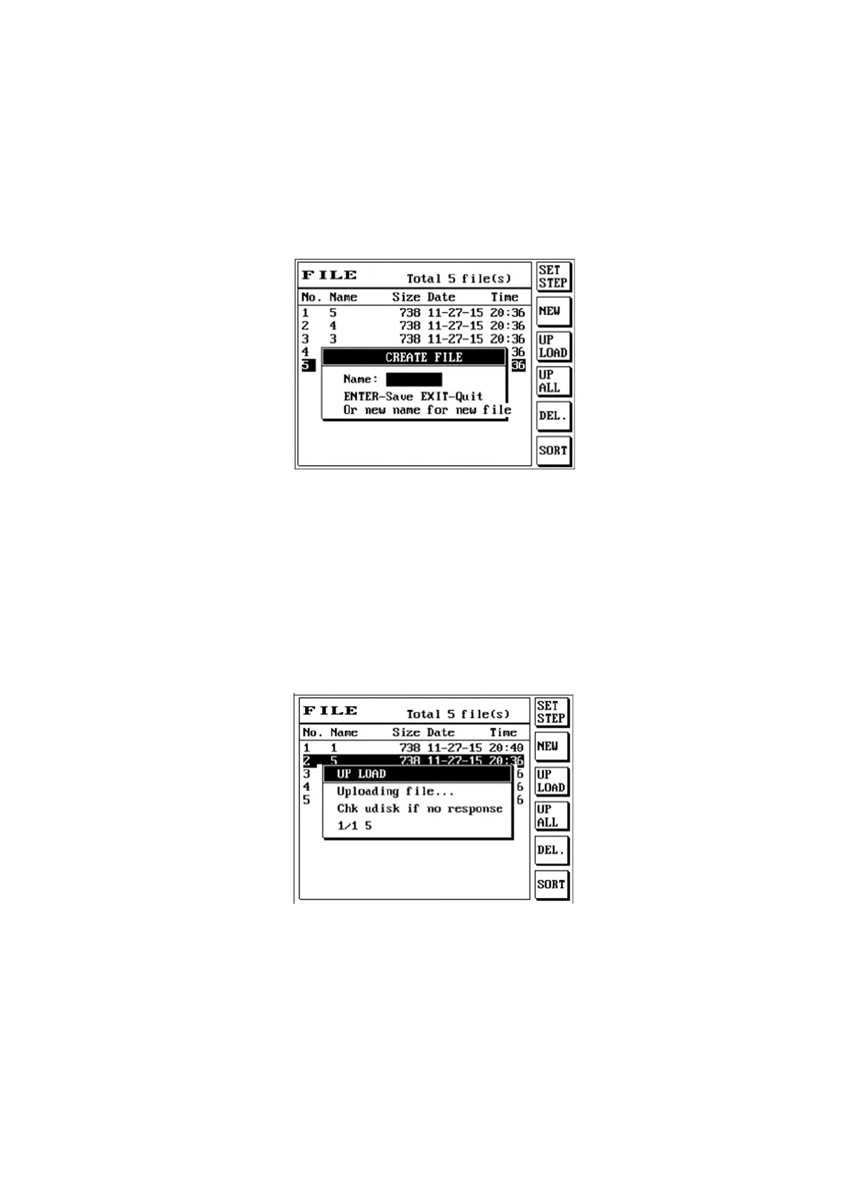 (1) Press [File] and use [↑] or [↓] to move the cursor to select the file name to upload, and insert the