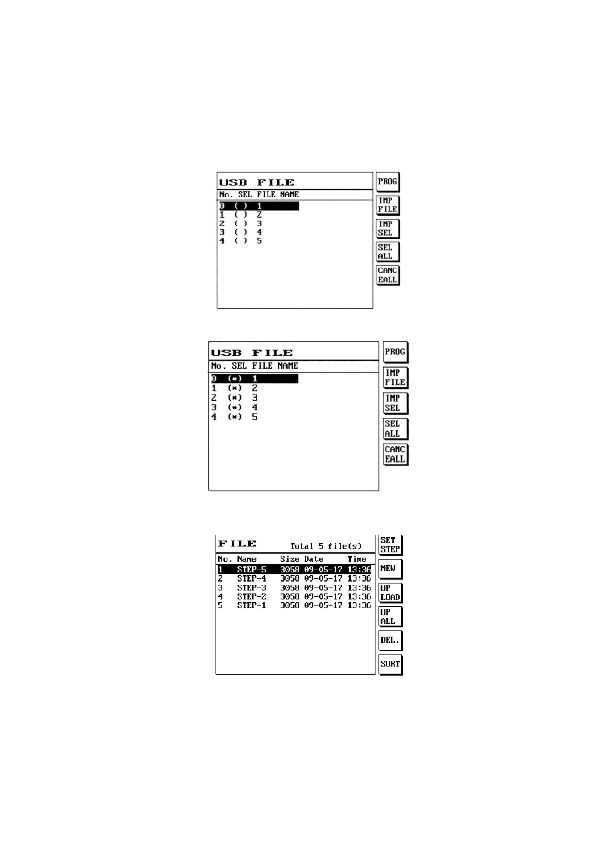3. Press S1 [IMP SEL] to import the file currently selected (highlighted) using the up and down buttons;