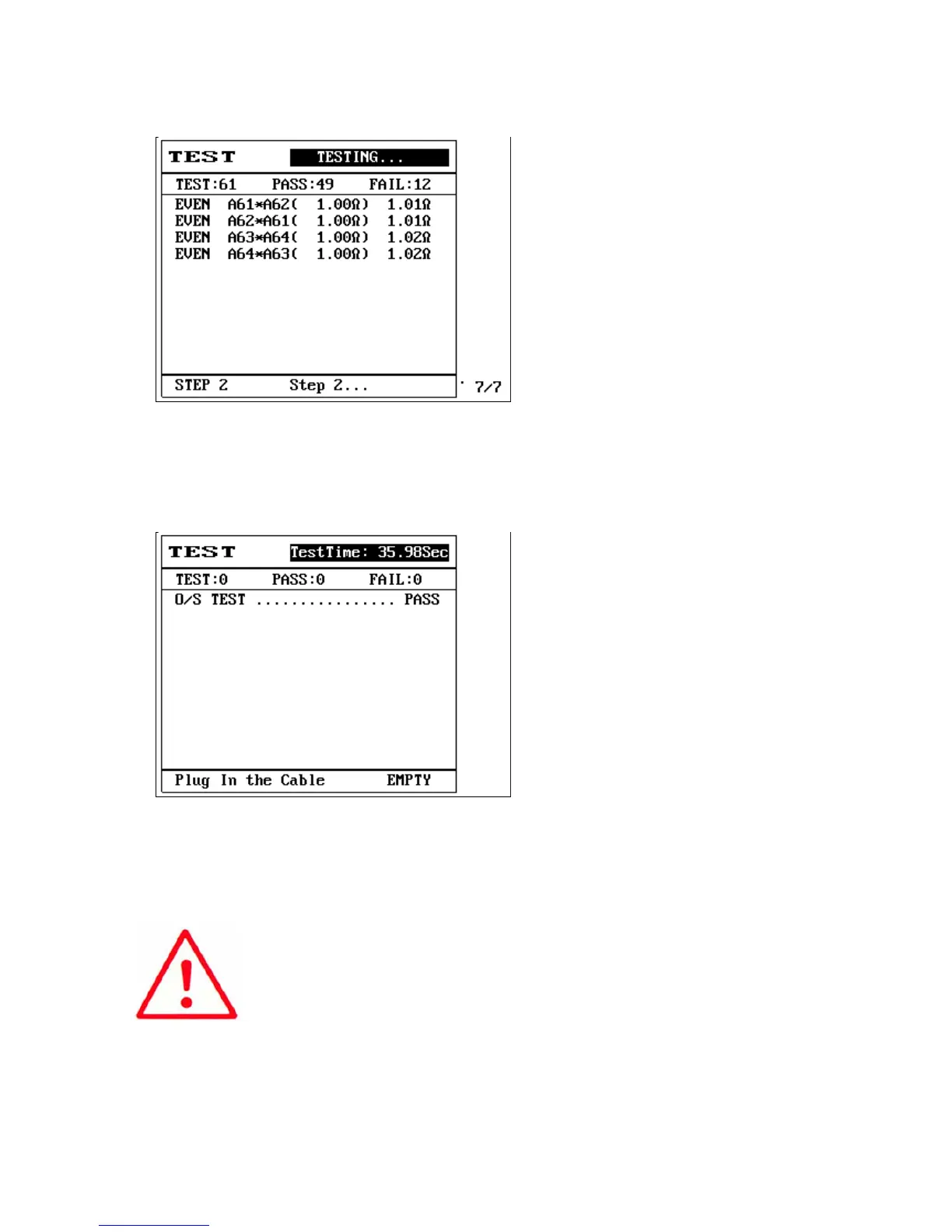 (19) First step PASS, the LCD screen will display {Wait for test step 2}.