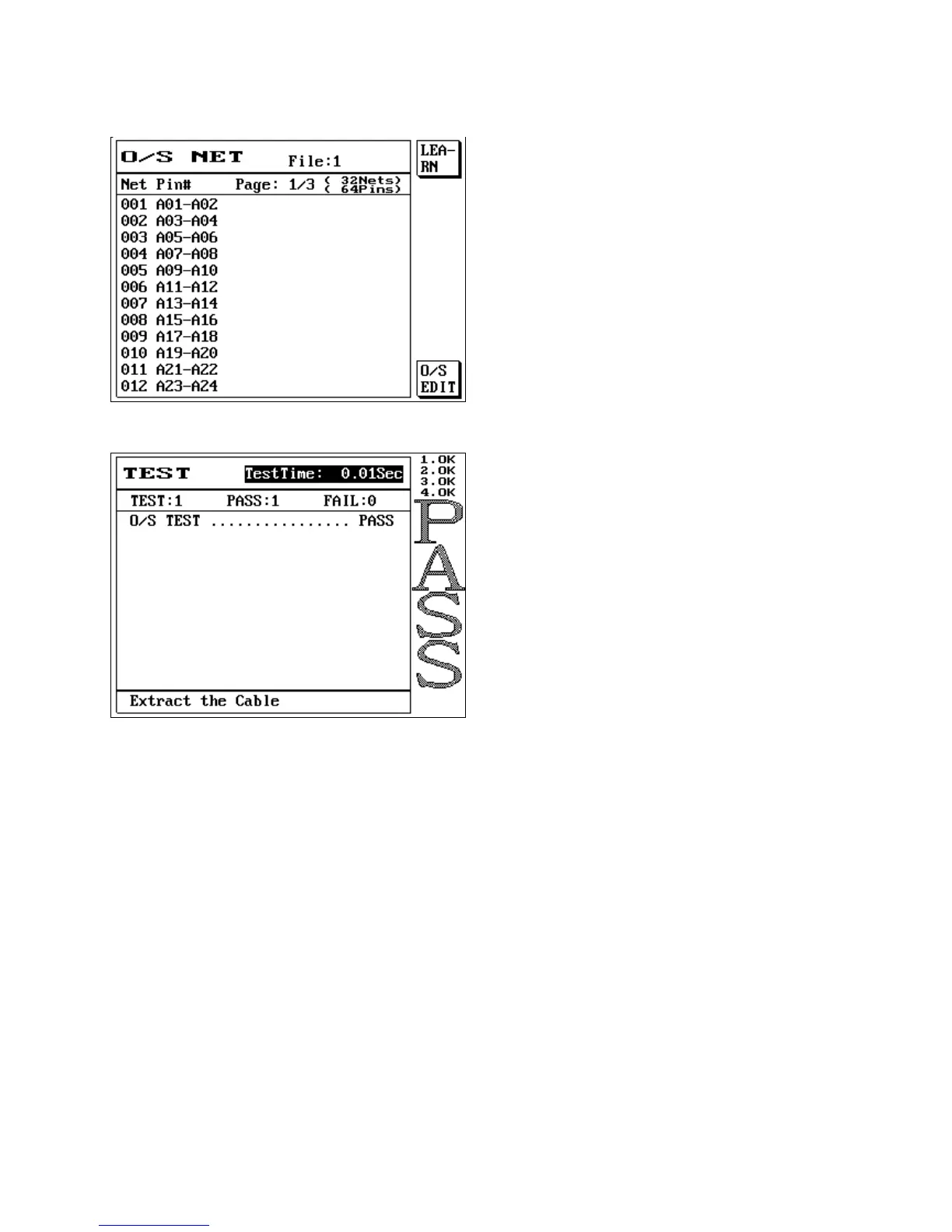 When performing cable test, press [TEST] and the LCD screen will display as follows: