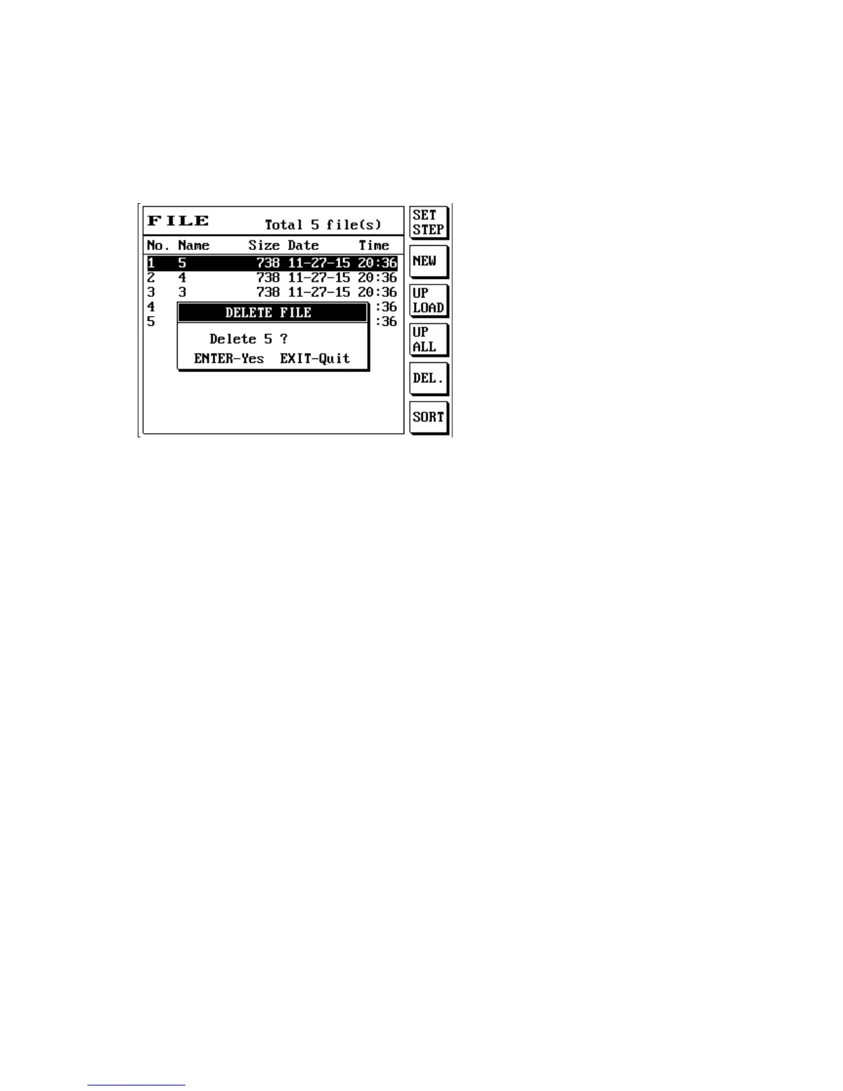 (2) Press S5 [DEL.] to execute the delete file action. [SHIFT] + S5 S5 [DEL.] deletes all files.