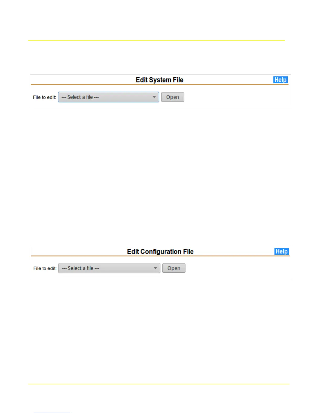 This page allows access to system files for advanced settings. This should only be used by