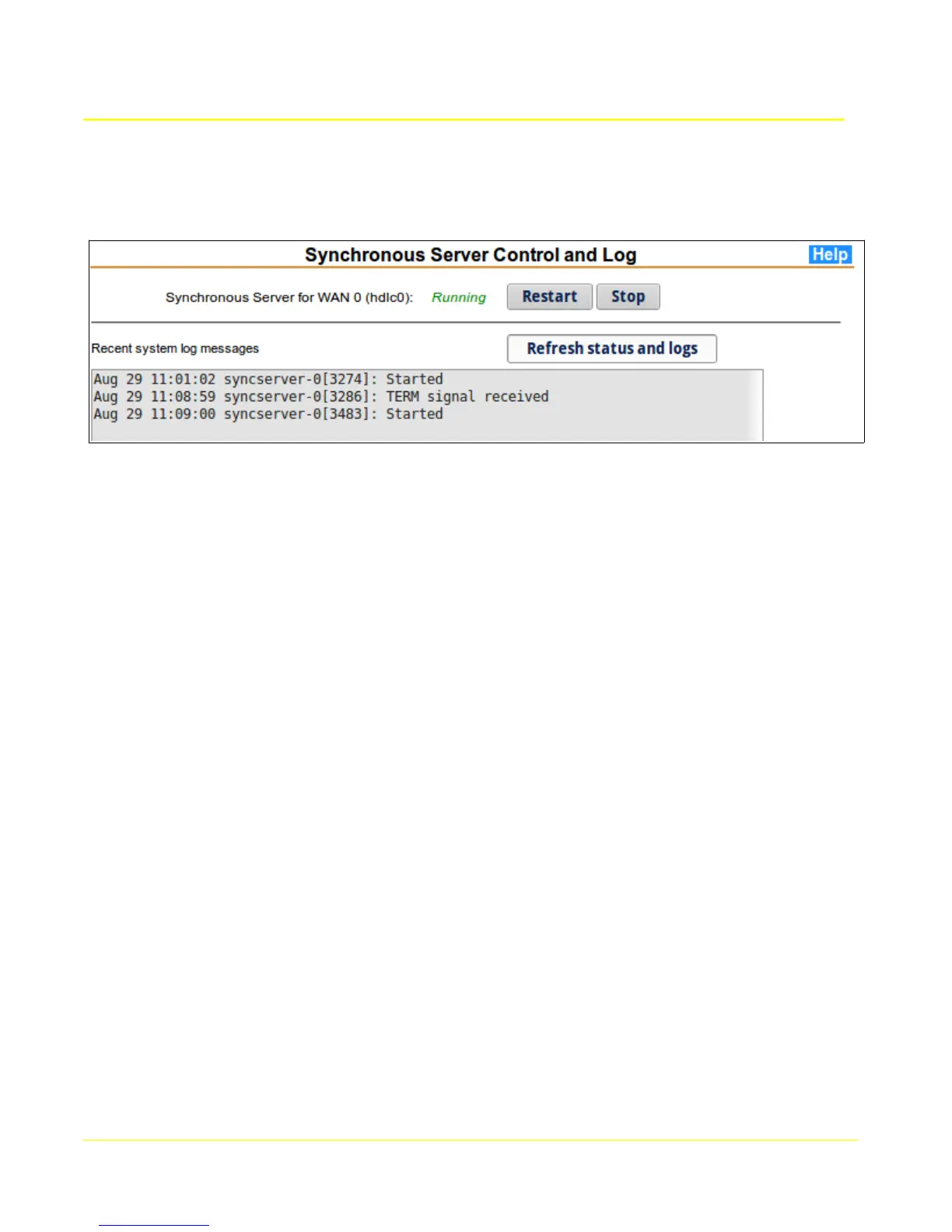 This page provides status and control of synchronous server application. System log messages
