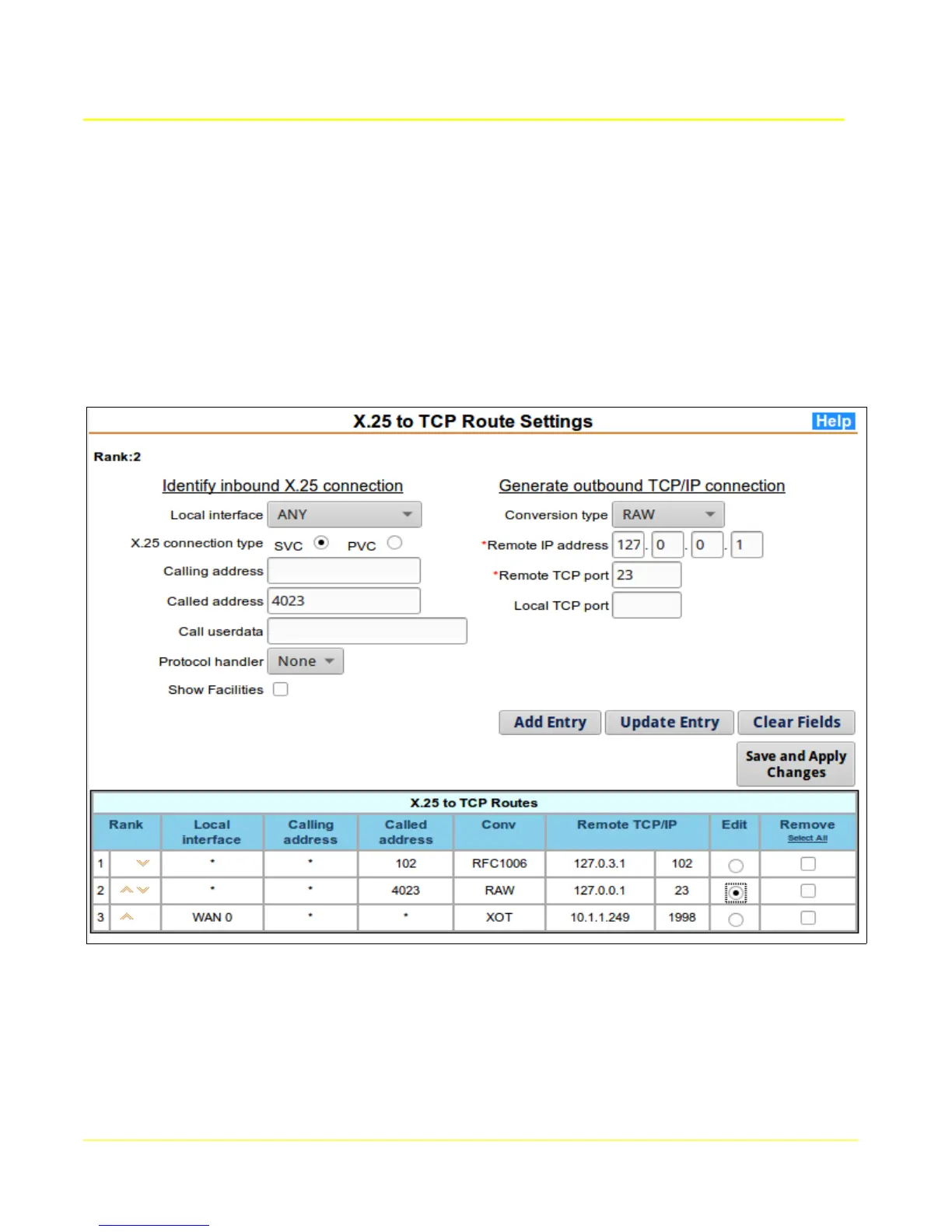 X.25 call request. When a match is found, the outbound TCP connection parameters of the matched