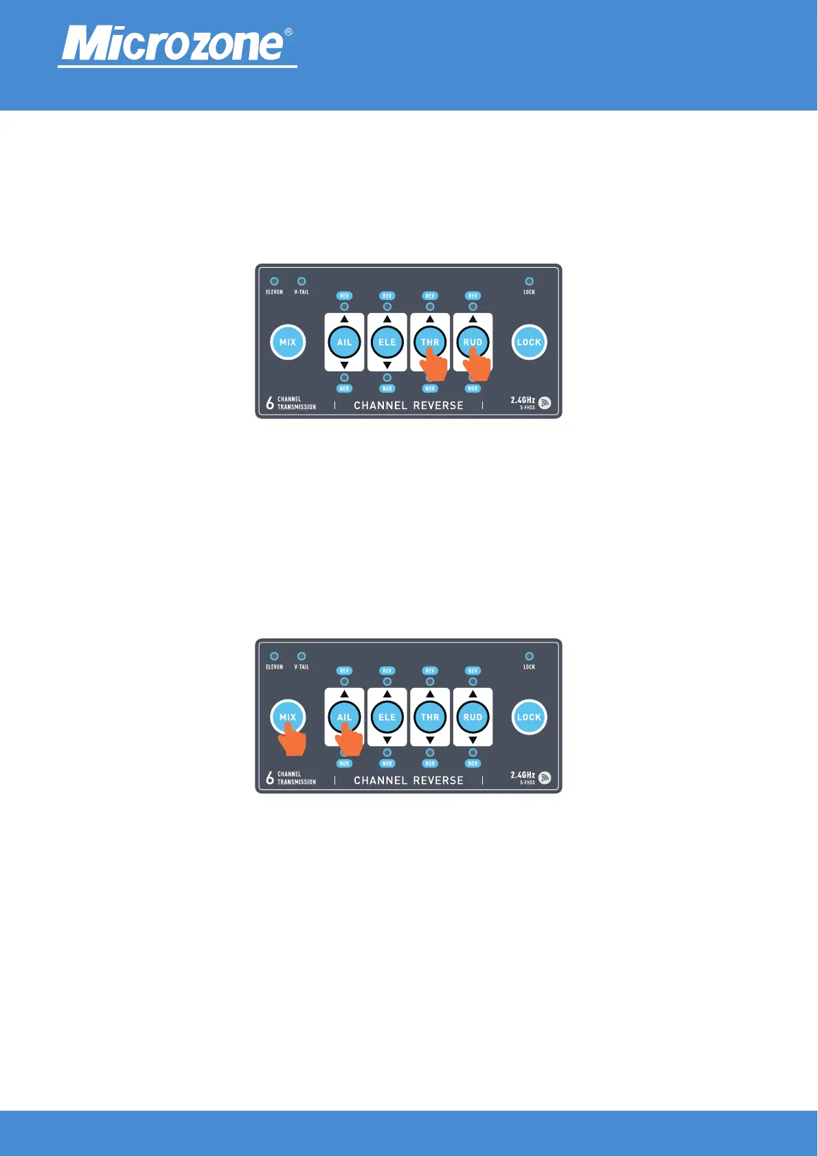After turning on, press the (THR+RUD) key to switch the SW key function, as shown in the following figure;