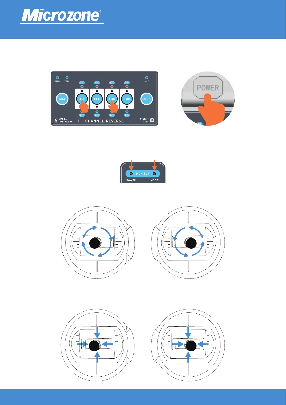 When the transmitter is turned off, press and hold the (AIL+THR) key with both fingers and then press the