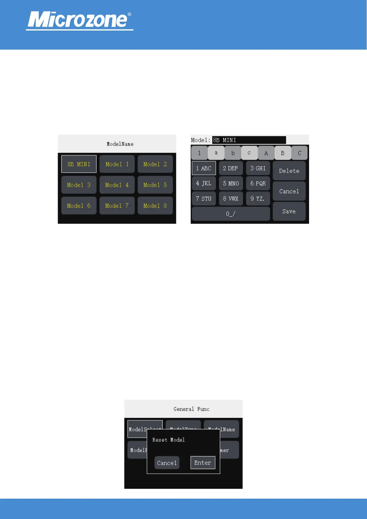 Press <UP> key or <DOWN> key to select the corresponding model name, press <MENU> key to enter the