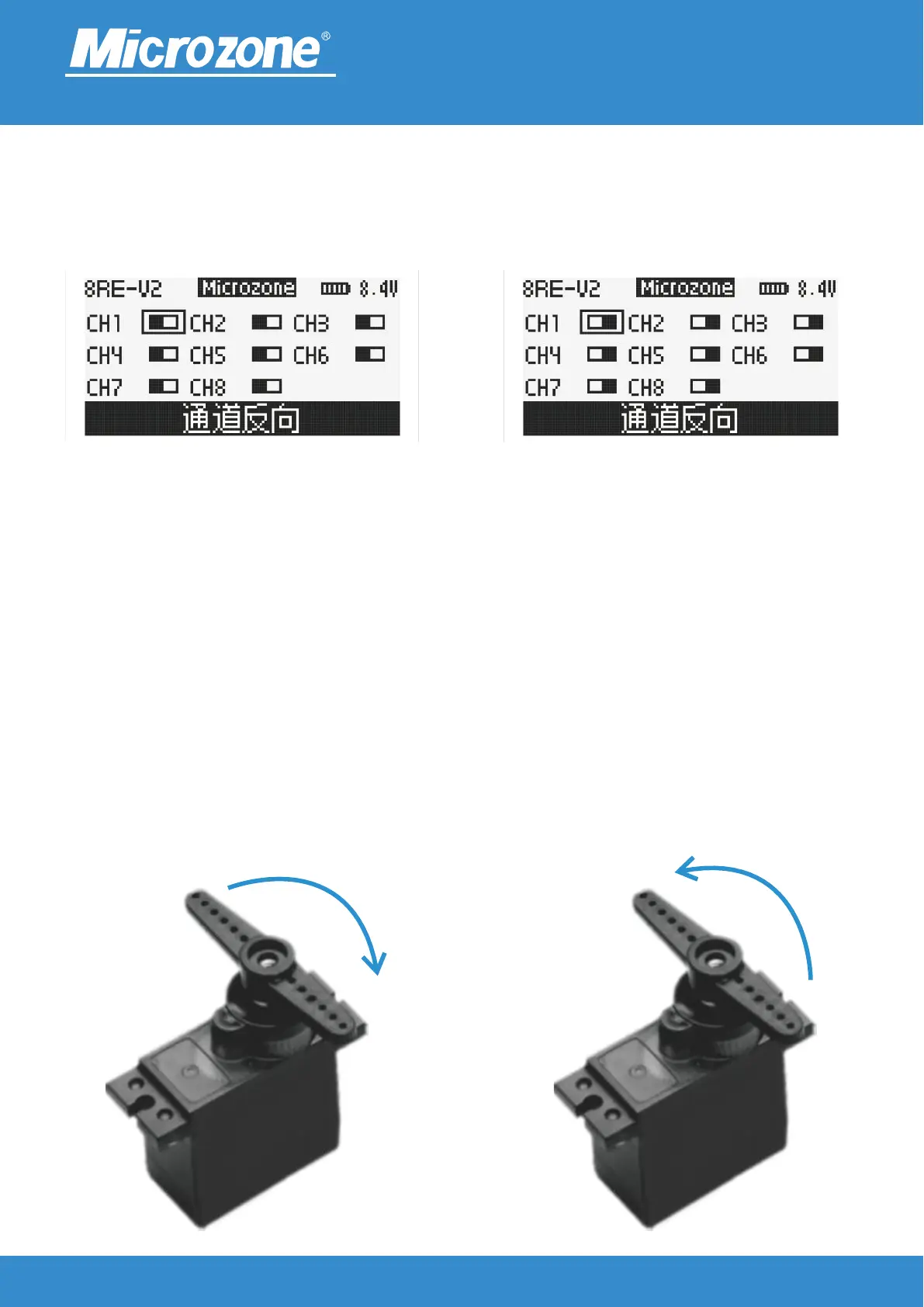 The operation direction of channels 1-8 can be reversed; Press <UP> key or <DOWN> key to select the