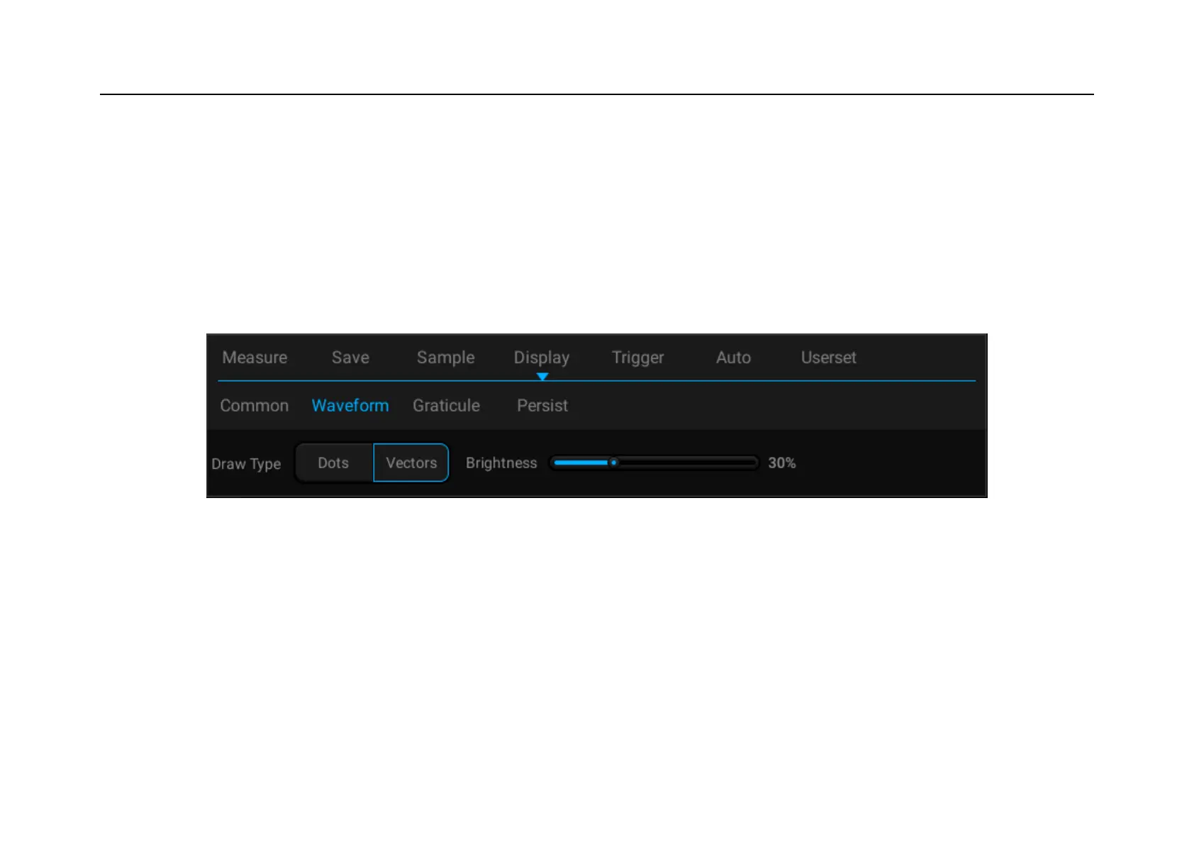 display mode and brightness of waveform. The waveform display mode is divided into two types: dots and vectors.