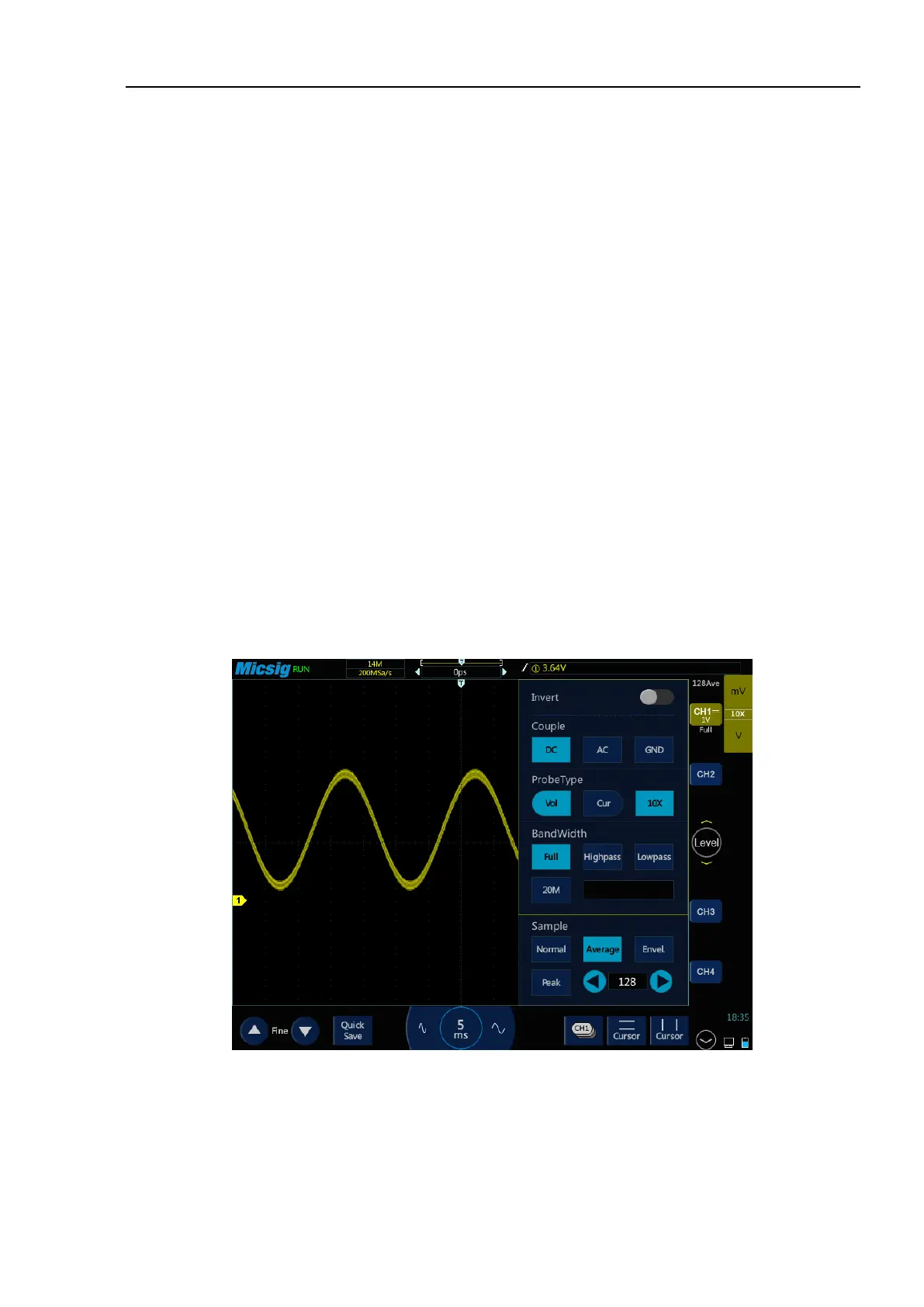 1) Open the channel menu and select the average sampling mode in the sampling mode option.