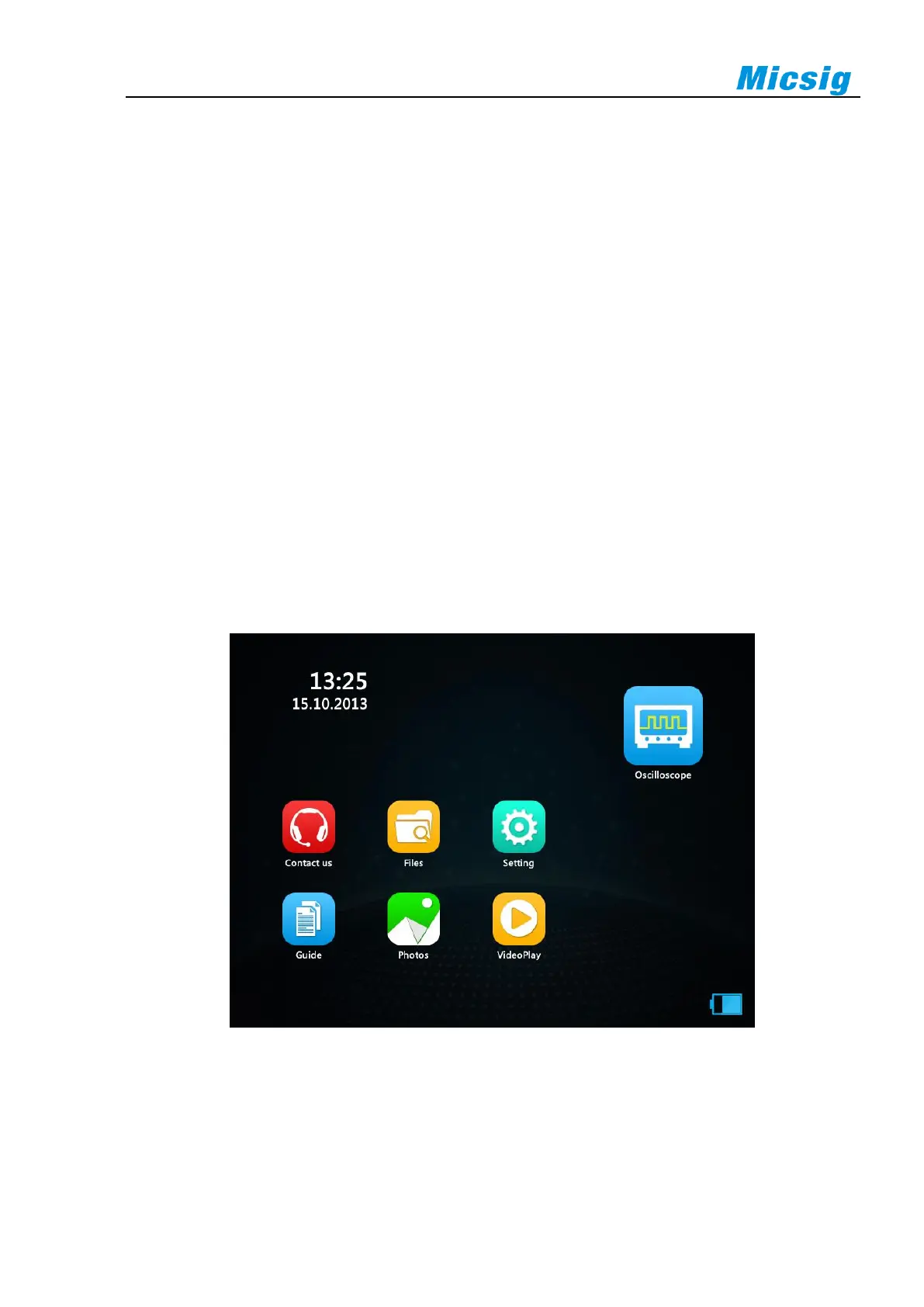 This chapter contains the functions of the oscilloscope homepage and describes the functions of all icons on the