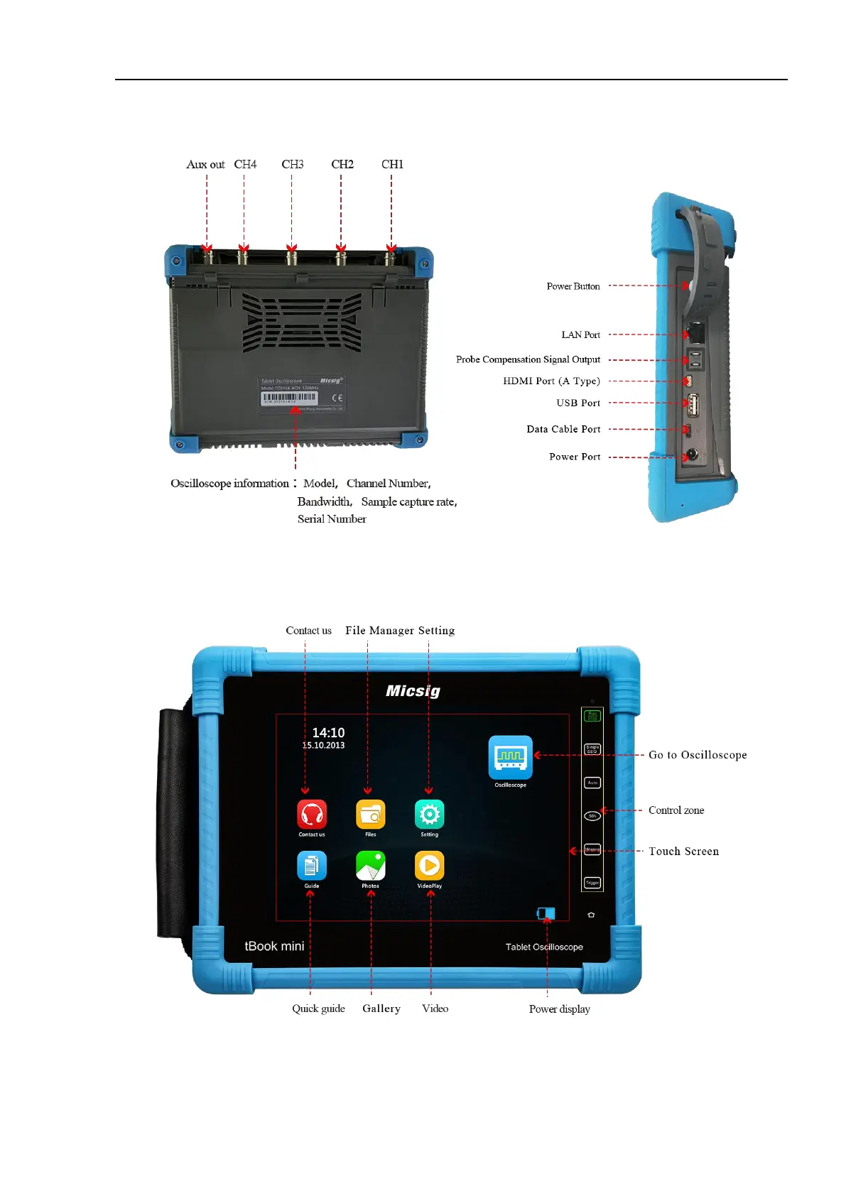 Micsig TO1102 - Rear Panel & Side Panel; Front Panel