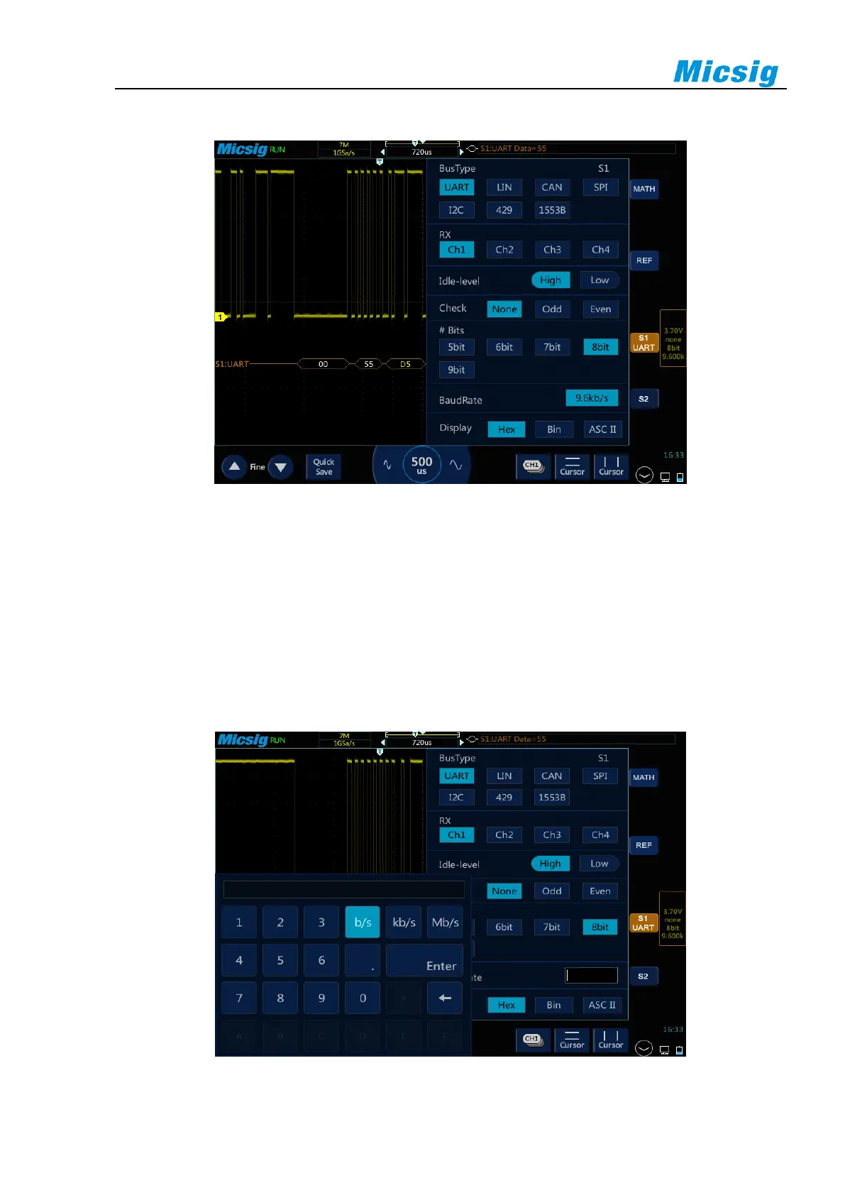 keyboard to complete setting. The baud rate can be set from 1.2Kb/S to 8.000Mb/S. The virtual soft keyboard