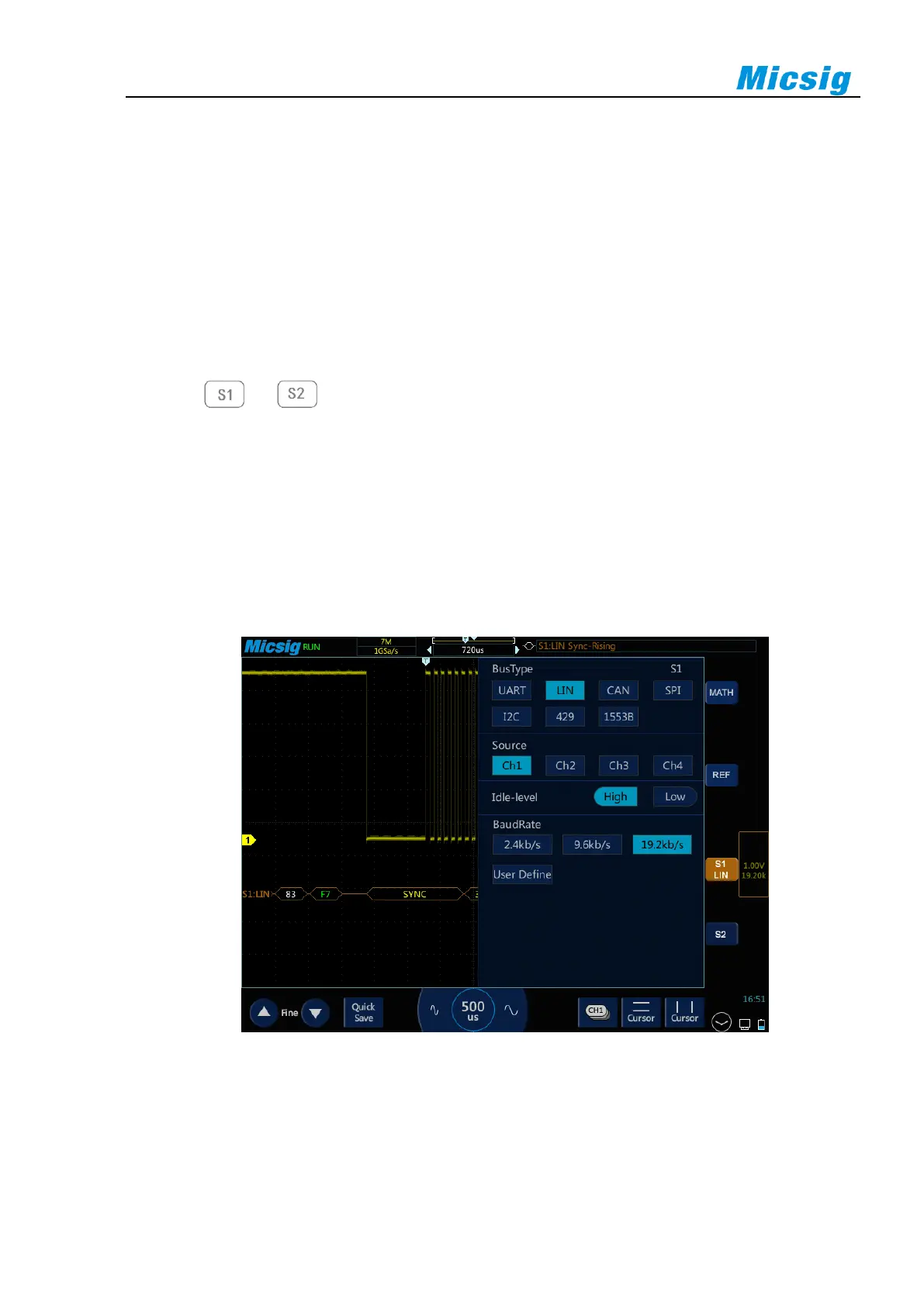 BaudRate — Select the baud rate that matches the signal being measured, and it can be customized.